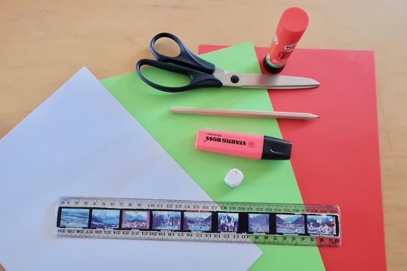 - Papier: rot, grün, weiss und eine Farbe, die gefällt