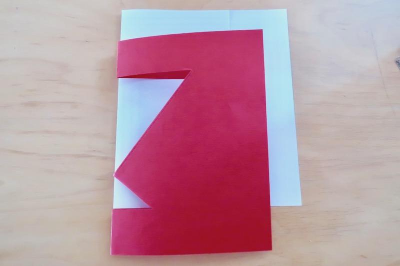 Rotes Papier in der Mitte zu einer Karte falten und dem Falt entlang einen eckigen «Kelch» einzeichnen.