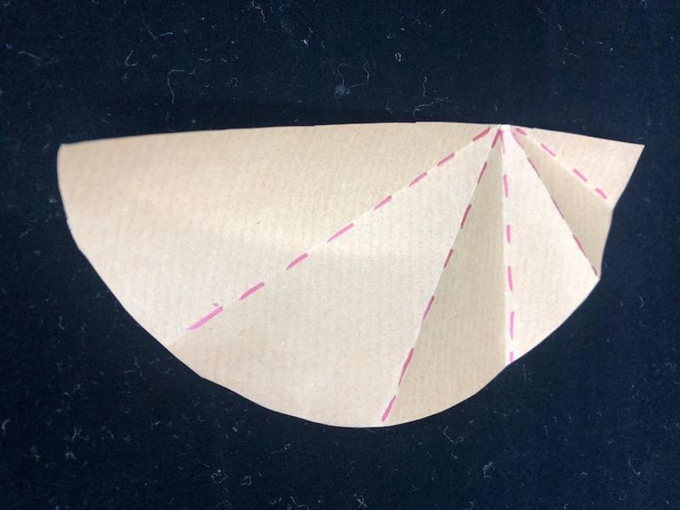 3. Kreis ausschneiden, diesen in der Mitte durchschneiden, so bekommt man einen Halbkreis.