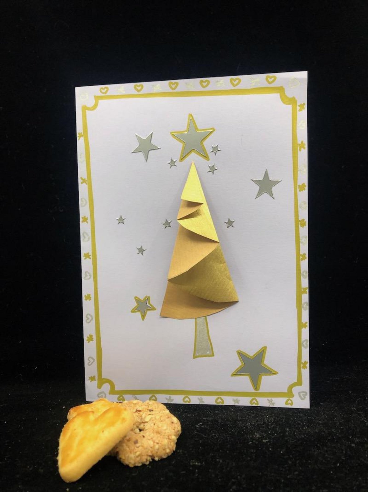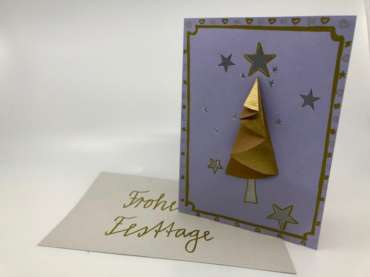 Noch schöner und persönlicher wird die Weihnachtspost mit selbst gebastelten Karten. Wie beispielsweise mit dieser Christbaumkarte.