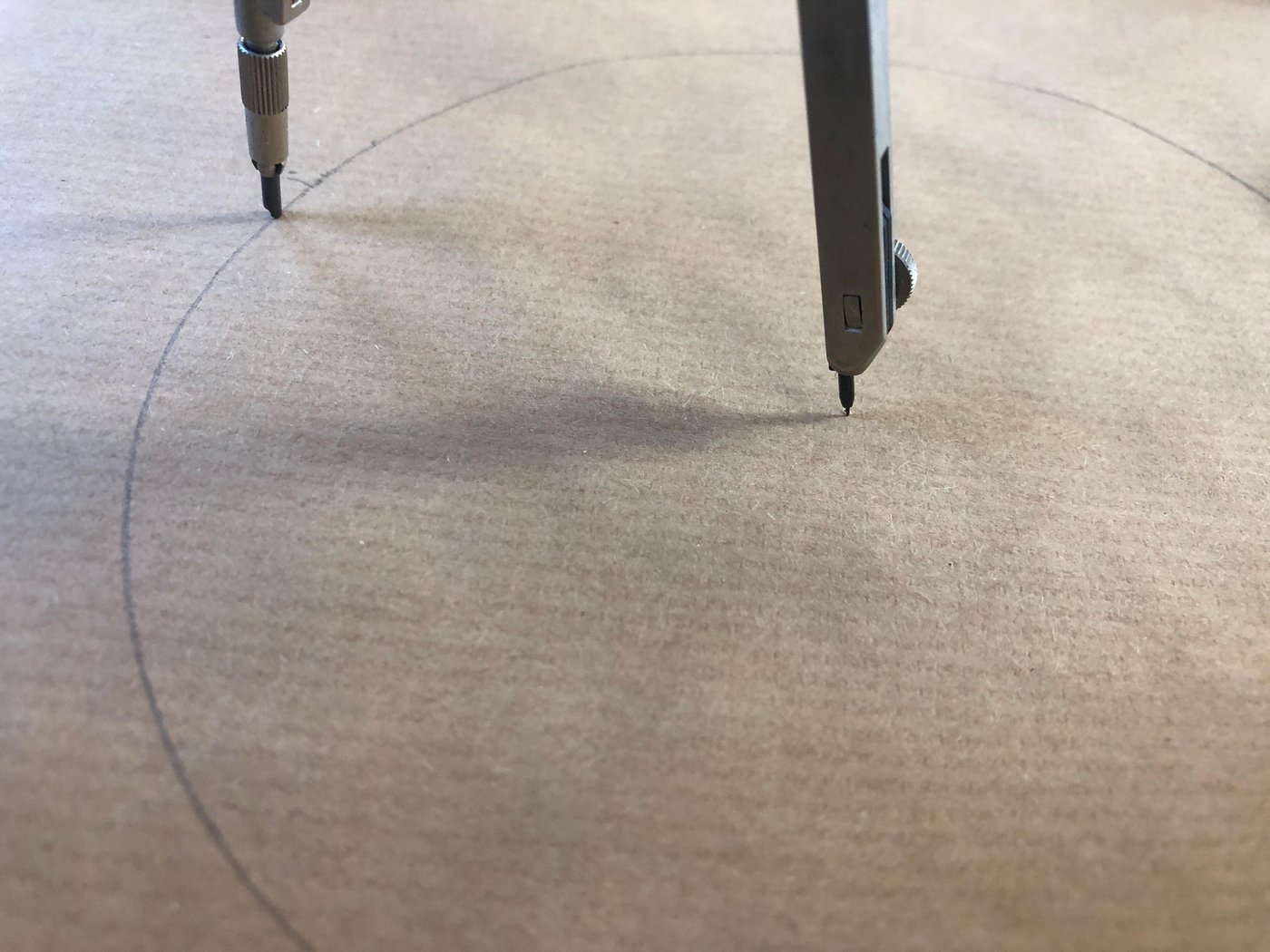 2. Mit dem Zirkel auf dem Packpapier einen Kreis ziehen. Der Durchmesser ist etwas kleiner als die Kartenbreite.