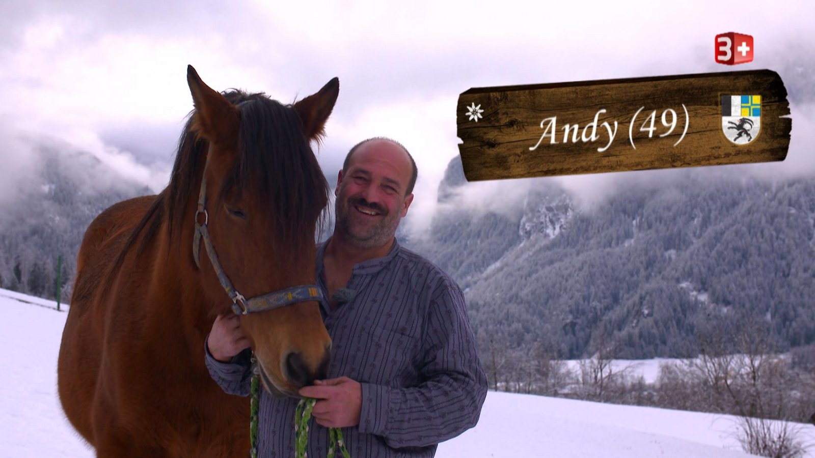 Andy liebt die Berge und verbringt neben dem Hof auf viel Zeit in den Bergen. Als Pistenbully-Fahrer präpariert er im Winter die Skipisten und geniesse den Ausblick auf die verschneiten Berge. Andy habe die Qual der Wahl und müsse sich zwischen Servicemitarbeiterin Karin (48) und der Zürcher Metzgereiangestellen Sandra (42) entscheiden. Sowohl Hofdame Karin, die Mutter einer 21-jährigen Tochter, als auch zweifach-Mutter Sandra, die schon Erfahrung in der Landwirtschaft sammeln konnte, möchten Andy von sich überzeugen. Mehr zu Andy