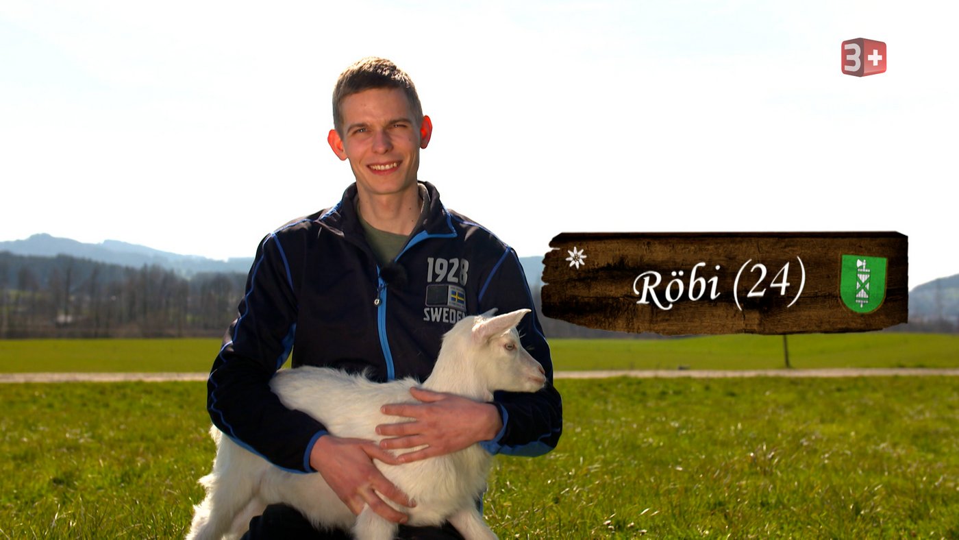 Jungbauer Röbi unterstützt seinen Vater auf dem Familienhof mit 95 Mastschweinen, 18 Kühen und Ziegen sowie 13 Hektar Grünland und einem Stück Wald. Für den tierlieben St. Galler gebe es nichts Schöneres, als in der Landwirtschaft zu arbeiten, sowohl mit den Tieren als auch mit den Landmaschinen. Wird die 20-jährige Nadine Röbi zum romantischen Picknick begleiten? Die Hebamme in Ausbildung ist selber auf einem Bauernhof aufgewachsen und teilt die Liebe zu den Tieren mit Röbi. Auch die Leidenschaft für Velotouren verbindet die beiden. Es bleibt abzuwarten, ob sich die sympathische Nadine von der geplanten Überraschung von Röbi verzaubern lässt.