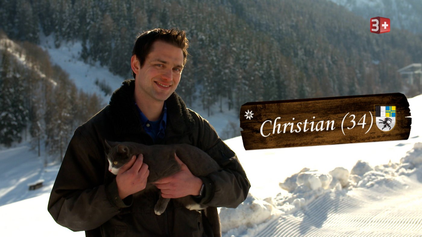 Christian führt im Kanton Graubünden einen Mutterkuh-Betrieb, den er von seinem Vater übernommen hat. Auf seinem 48 Hektar grossen, komplett modernisierten Hof leben rund 80 Kühe und einige Katzen und Hühner. Sein Hof ist von Skipisten umgeben, da liegt es nahe, dass der Bündner leidenschaftlich gern Ski fährt. Im Sommer sind seine Kühe auf der Alp. Christian hat zum einen die 30-jährige Monika aus dem Kanton Freiburg eingeladen. Sie studiert derzeit Agronomie und ist selbst auf einem kleinen Milchviehbetrieb aufgewachsen. Ausserdem hat sie schon auf diversen Landwirtschaftsbetrieben auf der ganzen Welt gearbeitet. Auch die ebenfalls 30-jährige Melanie ist an dem Dreifach-Vater interessiert. Sie arbeitet als Teamleiterin in der Reinigung und verbringt ihre Freizeit gerne in den Bergen oder mit ihrem Pferd.