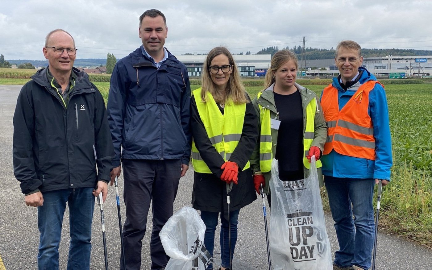 «Man findet alles; Glasflaschen, Aludosen, diverse Verpackungen», zählt Bigler auf und leert einen Kübel mit zuvor auf seinen Flächen gesammeltem Abfall. Das Einsammeln ist aufwändig – «manchmal sind wir stundenlang auf den Knien daran, Glassplitter zu entfernen», schildert der Landwirt. Das achtlose Wegwerfen von Abfall – bekannt als Littering – ist ein Kostenfaktor, eine Gefahr für die Tiergesundheit und kann Maschinen beschädigen, fasste Martin Rufer zusammen. Der Direktor des Schweizer Bauernverbands (SBV) hatte zusammen mit der IG Saubere Umwelt (IGSU) und McDonalds Schweiz zu dem Anlass eingeladen. Es geht auch um die Lancierung des Clean-Up-Days, an dem jedes Jahr im ganzen Land Einsammelaktionen durchgeführt werden.