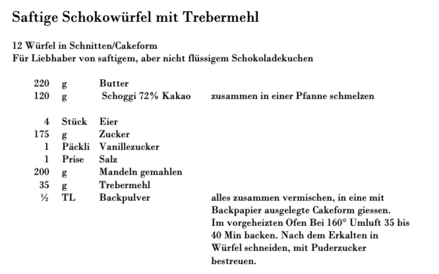 «Im Gegensatz zu Vollkornmehl enthält Trebermehl nicht nur das ganze Korn, sondern auch die Spelzen», erklärt Rosmarie Bühlmann. Als gelernte Konditorin und Diätköchin weiss sie um die wertvollen Inhaltsstoffe: Viel Ballaststoffe für die Verdauung und ausserdem reichlich Proteine. Je nach Brauerei, Maisch-Temperaturen und Biersorte können die Nährwerte und der Geschmack allerdings variieren.