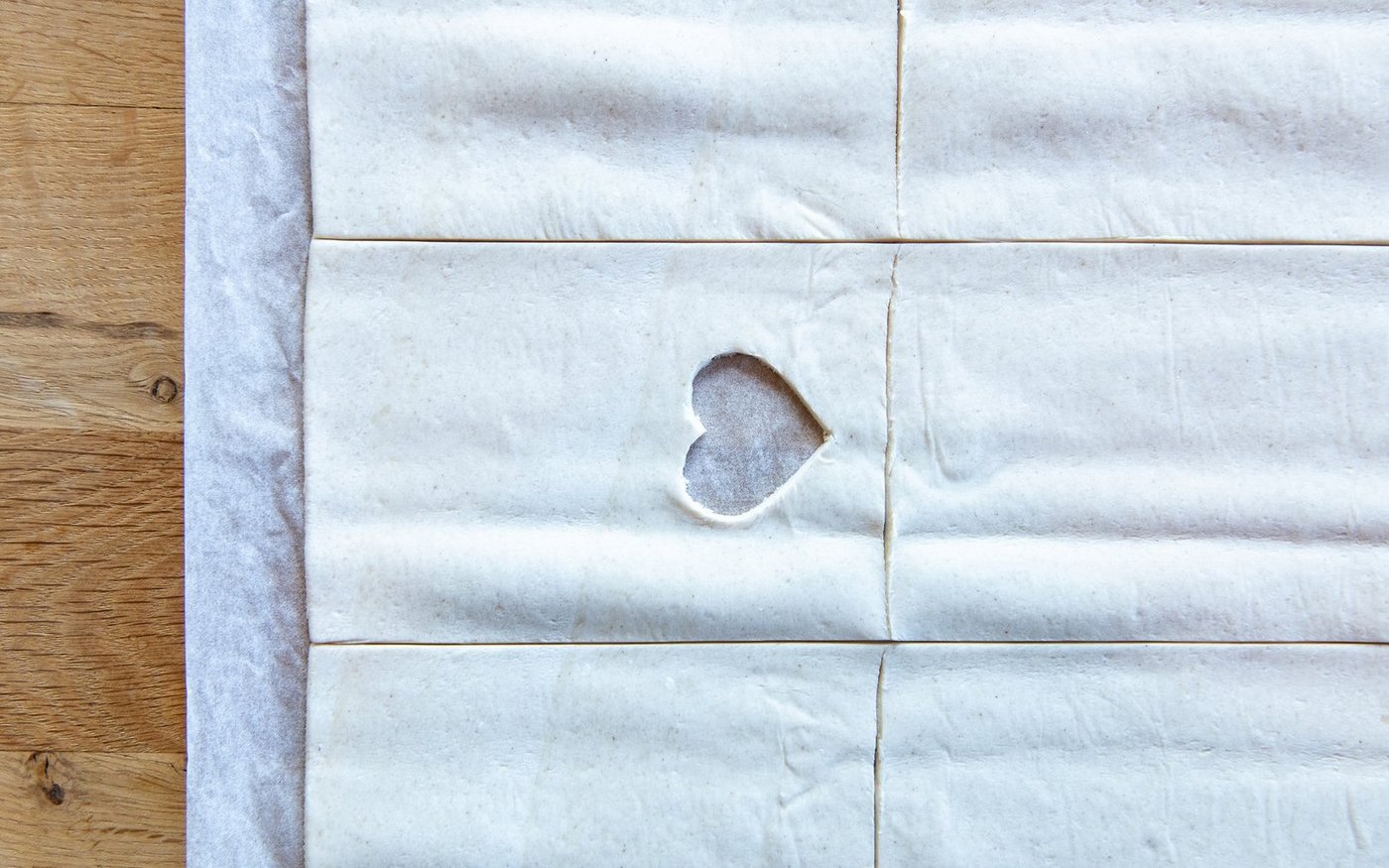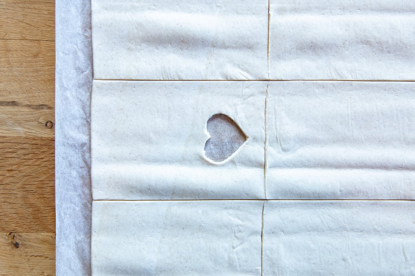 - Herzförmiger Ausstecher oder Schablone aus Papier