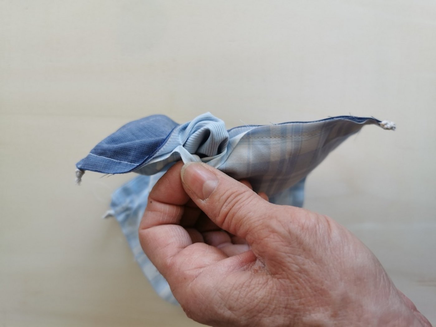 5. Die Innenseite über die Öffnung nach Aussen stülpen und glatt bügeln.