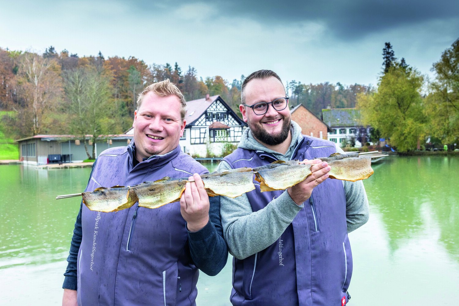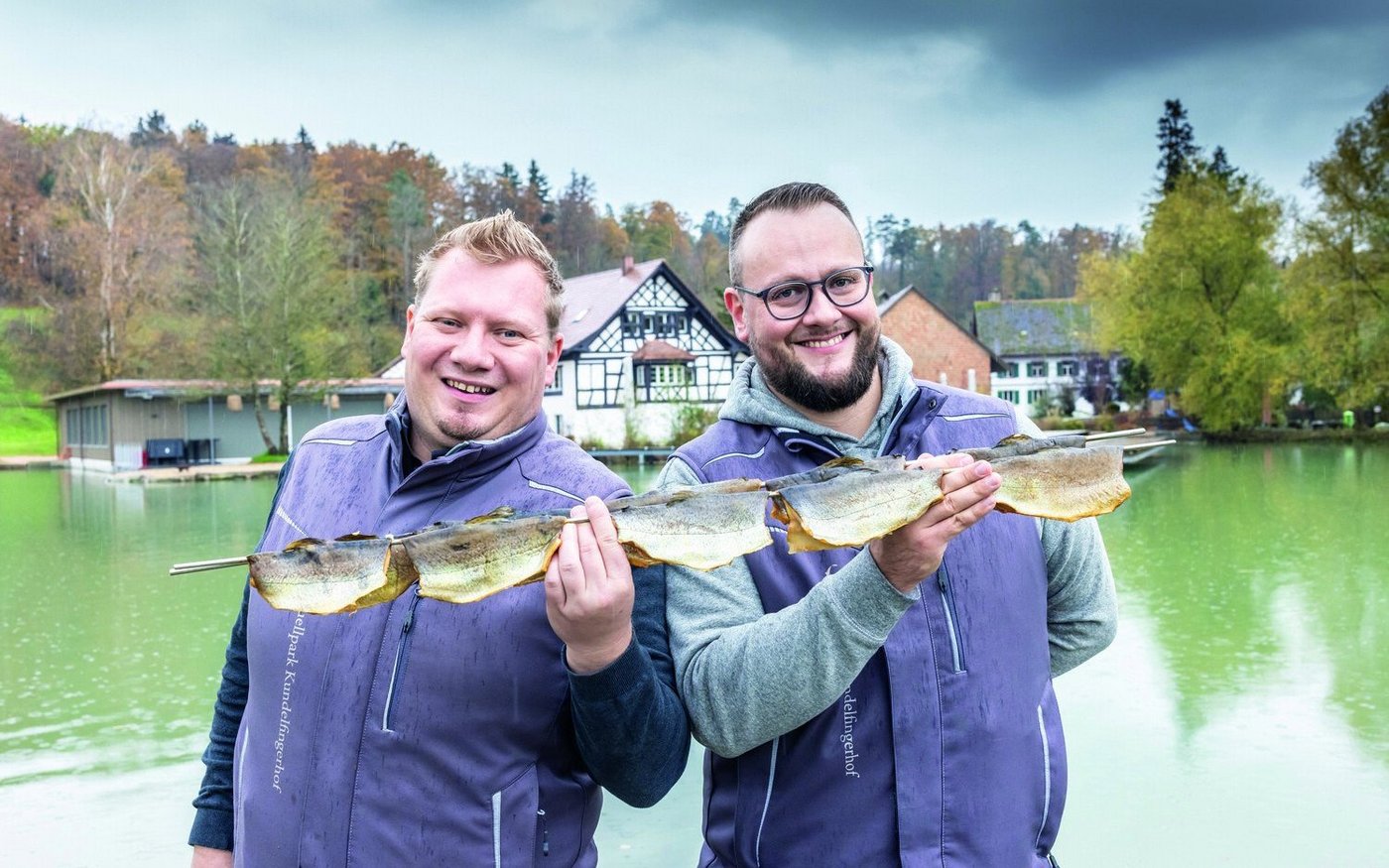 Der Kundelfingerhof in Schlatt steht seit 1915 für Fischgenuss in bester Qualität. Das Team rund um Martin Junker und Daniel Stamm steht ein für eine tiergerechte, umweltschonende Produktion und vereint in ihrem Tun Tradition, Qualität und Nachhaltigkeit. Der Kundelfingerhof ist vielseitig. Fischzucht, Veredelung, Räucherei, Gastronomie mit Bankettsaal, ein Angelpark sowie ein Hofladen gehören zum Betrieb. Seit 2017 haben Junker und Stamm mit ihrem Team die Produktion von 50 Tonnen Fisch auf 320 Tonnen gesteigert. Die Kreativität rund um die Produktentwicklung der Forelle – von Burger, bis Wurst, Thai Fish Cake, Knusperli und vieles mehr – ist beeindruckend. [IMG 2]
