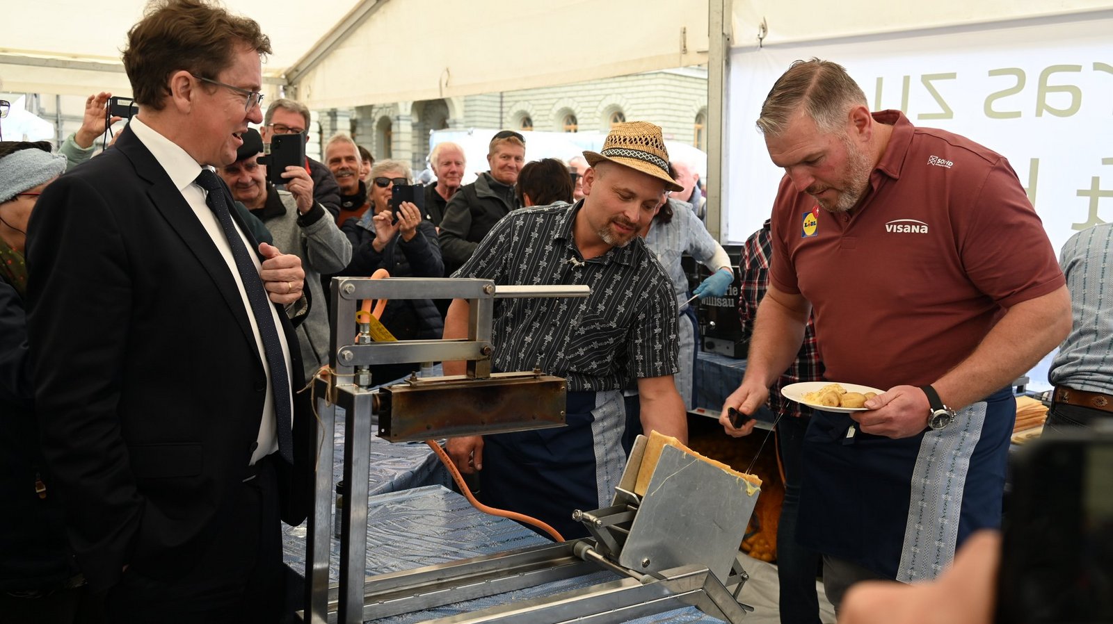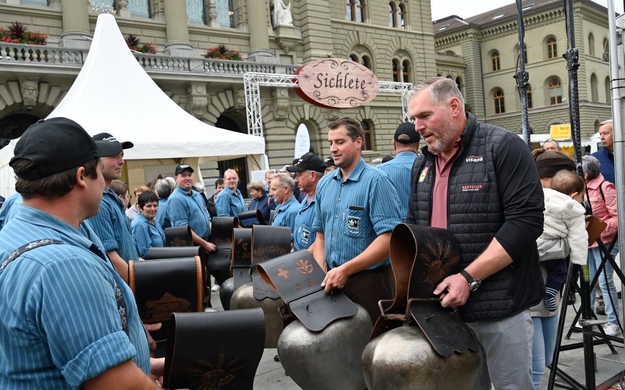 Die Sichlete 2024 gehört bereits wieder der Vergangenheit an. Zahlreich schlenderten kleine und grosse Besucherinnen und Besucher den Ständen entlang. Es gab einiges zu degustieren, bestaunen, kaufen aber auch streicheln. Besonders viele Zuschauer verfolgten den traditionellen Alpabzug durch die Stadt zum Sichleteplatz. Die Familie von Markus und Annina Schweizer aus Utzigen, ein paar ihrer Kühe und die Helfer sind nun auf zahlreichen Handy-Kameras verewigt. Nebst der kurzen Rede von Jürg Iseli, Präsident des Berner Bauernverbands, hielt Bundesrat Albert Rösti eine flammende Rede auf die Landwirtschaft und liess sich von Schwingerkönig Christian Stucki eine Portion Raclette servieren.