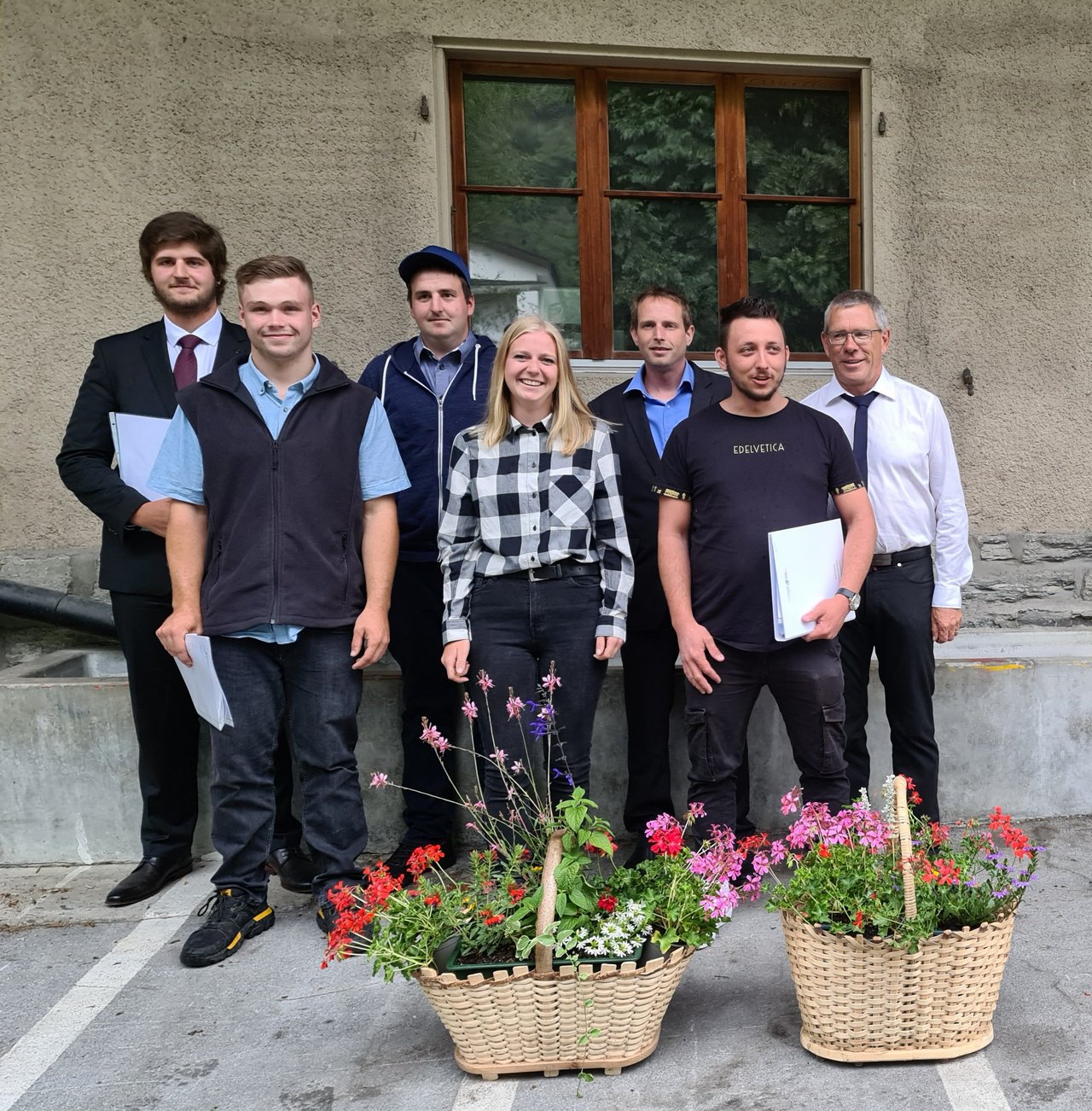 Am Dienstag 28. Juni fand am Landwirtschaftszentrum (LZV) in Visp die traditionelle Schlussfeier statt. In einer gemütlichen und familiären Atmosphäre konnten eine Absolventin und fünf Absolventen der Berufsschule für Landwirtschaft ihre Fähigkeitszeugnisse als Landwirt/in EFZ in Empfang nehmen. Dies sind: Janic Eggs (Zweitausbildung, Lehrbetrieb Samuel Berclaz, Ergisch); Vivianne Fux (Zweitausbildung, Carmen und Nicolas Lötscher, Unterbäch); Maurizio Jäger (Zweitausbildung, Thomas Elmiger, Pfynguet, Turtmann); Nino Jordan (Landwirtschaftszentrum, Gondo); Frédéric Mathieu (Thomas Elmiger, Pfynguet, Albinen); Lars Zenhäusern (Nachholbildung, Bürchen).