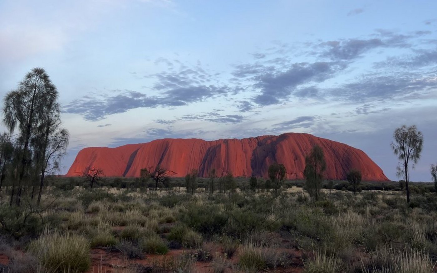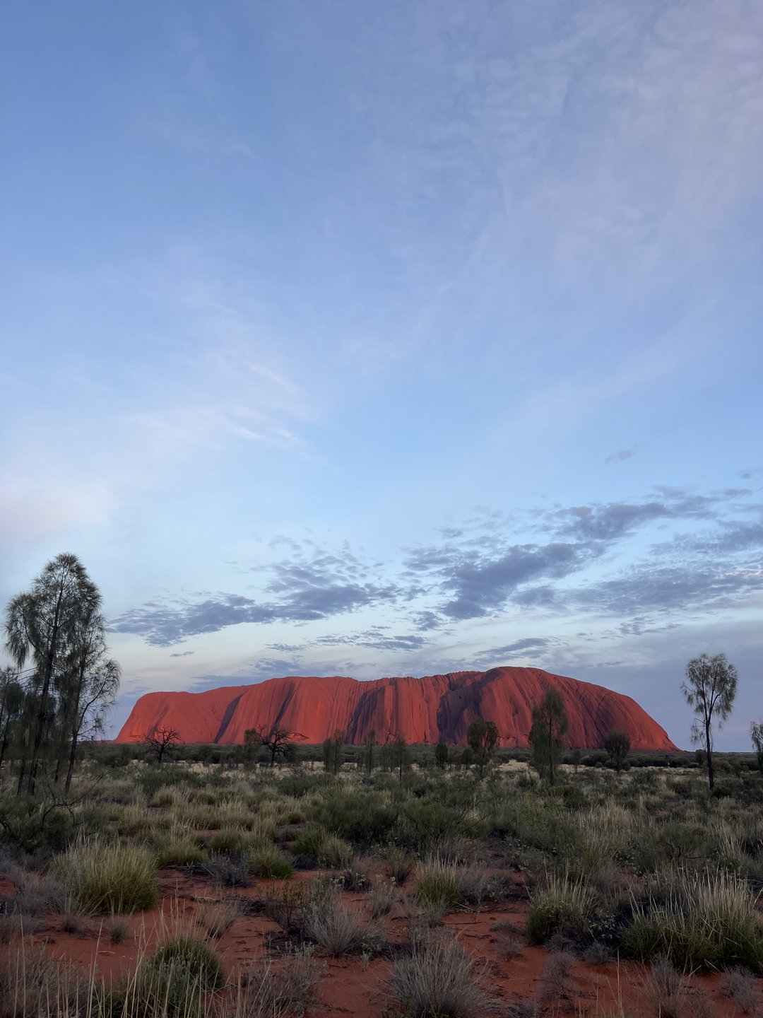 Dieser Stein ist für die Indigenen ein heiliger Ort und darf seit 2019 offiziell nicht mehr bestiegen werden. Staunen darf man aber noch – und schwitzen. In der Wüste kletterte das Thermometer an diesem Tag (Anfang Dezember) auf 42 Grad. Aus diesem Grund sind im Hochsommer längere Spaziergänge um den Uluru herum verboten.