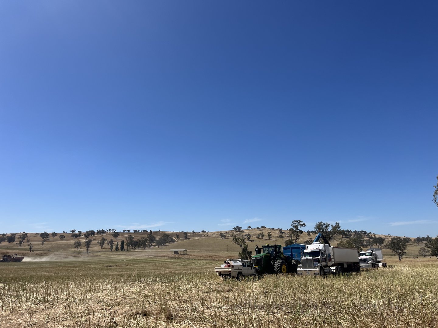 Im Dezember laufen die Ernten der Ackerkulturen auf Hochtouren. Hier im Bild zu sehen ist ein Rapsfeld. Dieser Betrieb in Harden (New South Wales) rechnet mit einem Durchschnittsertrag von 1,5 Tonnen pro Hektare (ohne Bewässerung).
