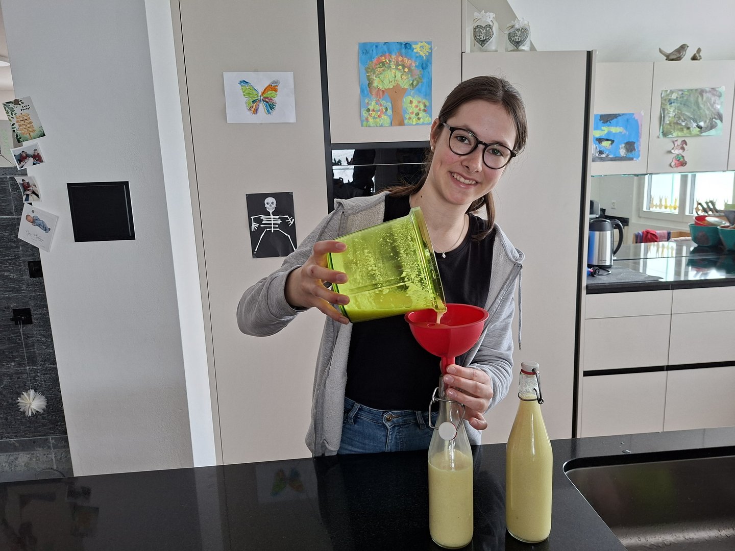 Besonders gerne arbeite ich im Garten oder mit Tieren. Das Kochen und Backen bereitet mir ebenfalls viel Freude. Es ist vor allem die Vielfalt, die diese Ausbildung so interessant macht. Auf dem Betrieb der Familie Bisang koche ich praktisch täglich, erledige Arbeiten im Haushalt und kümmere mich um die Hunde, Hühner, die beiden Pferde und gelegentlich um die Kühe.