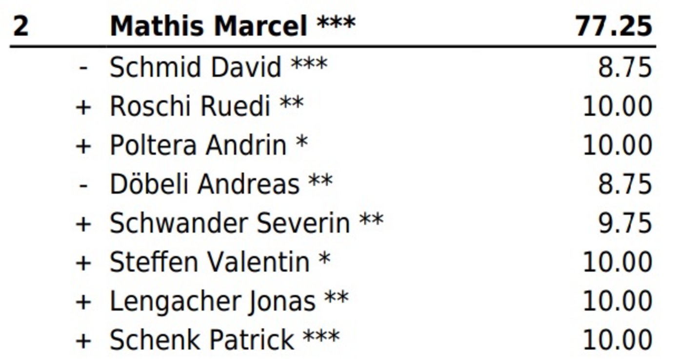 Hier das tolle Notenblatt des Nidwaldners vom ESAF in Zug: