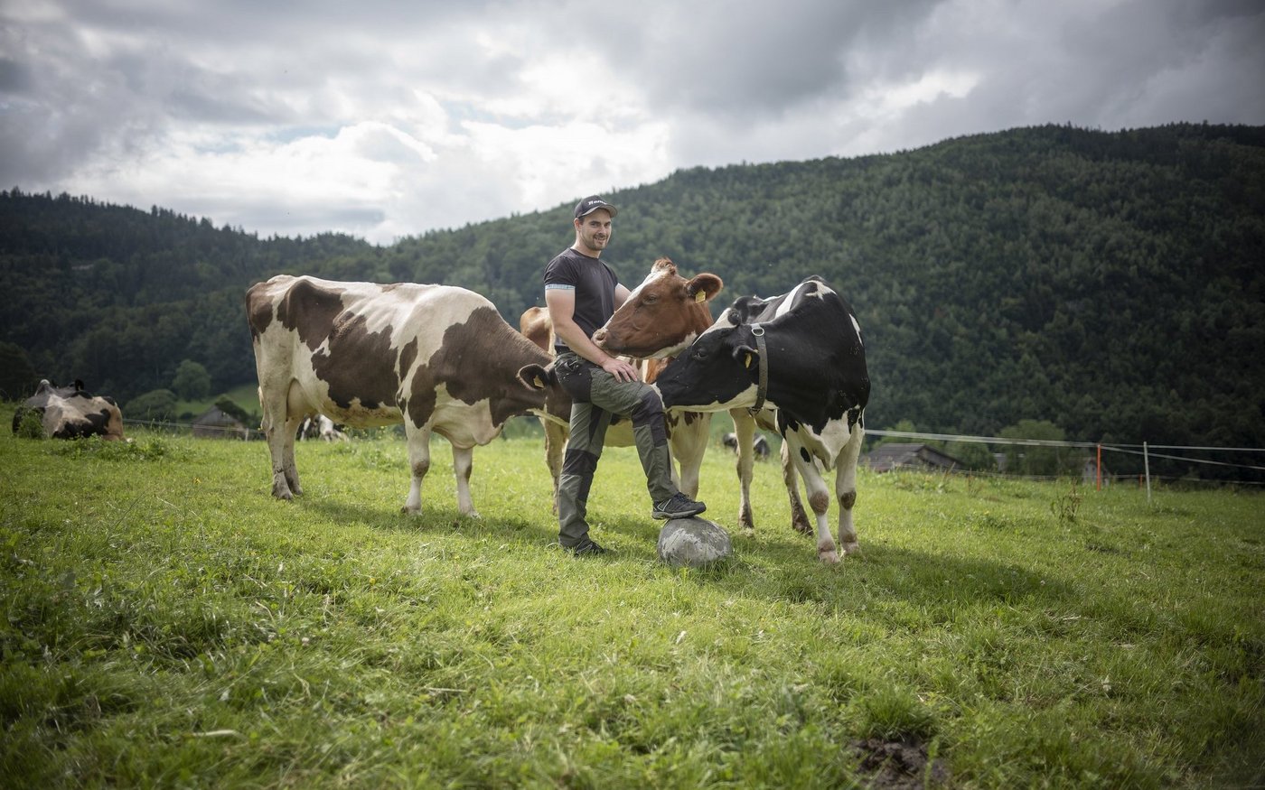 Nein, ein Obelix ist Remo Schuler nicht. Dafür ist er mit 1,86 Meter Körpergrösse zu kurz geraten. Andererseits schlägt ihm mit seinen 100 Kilo Kampfgewicht aber auch keine Obsession hinspeislich Wildschweinbraten schwerverdaulich auf die Rippen. «In der Fraktion der Steinstösser gehöre ich tatsächlich zu den schmächtigeren», sagt der Landwirt aus Rickenbach SZ und holt Anlauf. Zwei Schritte zurück, links der Maschinenpark; die Zehenspitzen des rechten Fusses hochgezogen, rechts die Kälber im Stall.