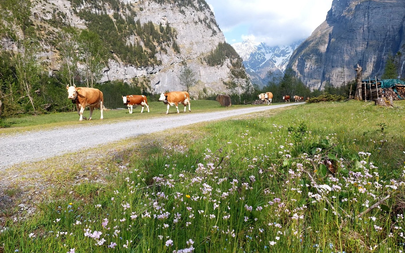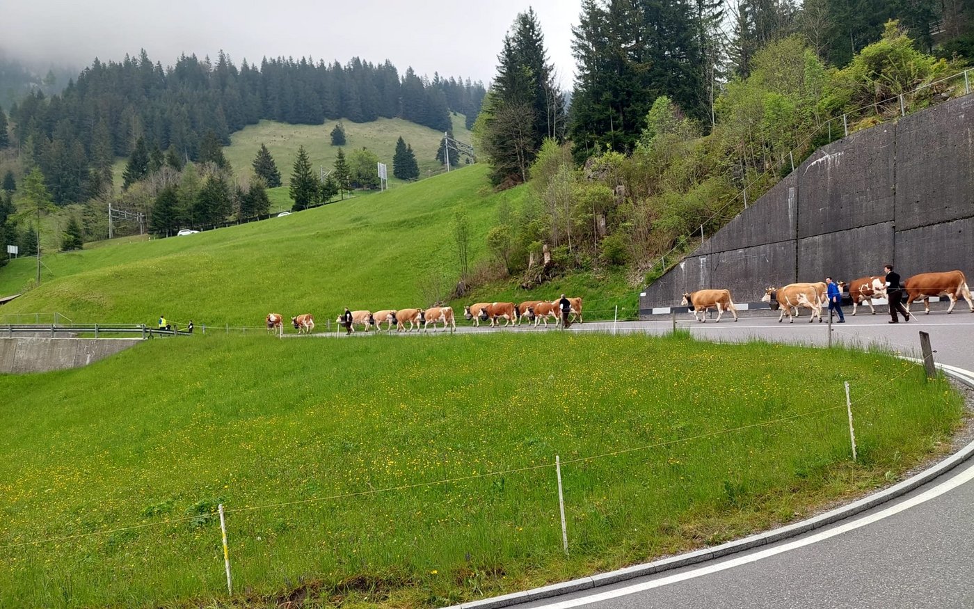 Am Samstag, dem 20. Mai 2023, zogen Hanspeter und Sohn Peter Ryter aus Kandergrund mit ihren reinen Simmentalerkühen und -rindern (55 Stück) auf ihre Alp Gasternholz. Die Alp liegt auf 1380 m ü. M. im Gasterntal im Berner Oberland. «Dank dem vielen Gras konnten wir dieses Jahr eine Woche früher z Alp gehen», sagt Peter Ryter. Am Abend um 18 Uhr ging es los mit dem Alpaufzug. Der Fussmarsch dauerte gut drei Stunden…