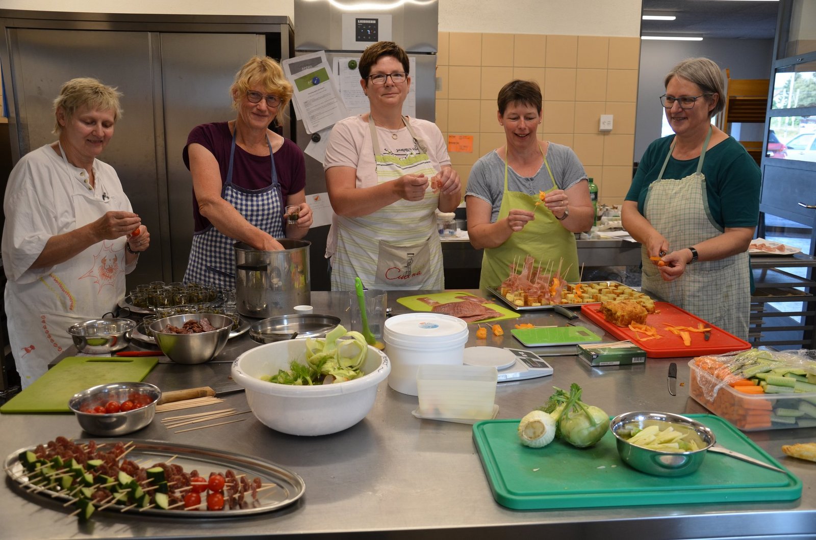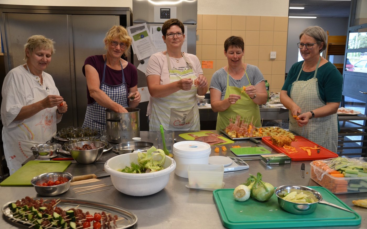 Es riecht herrlich nach Bölletünne in der grossen Küche. Fünf Frauen schnetzeln, schneiden und backen um die Wette. Zwei Hochzeitsgesellschaften und eine Gästeschar sollen rechtzeitig den Apéro der Landfrauen Schaffhausen bekommen. Die Bölletünne ist eines der beliebtesten Produkte dieses Vereins, welcher dieses Jahr zehn Jahre alt wird. Quark aus dem Klettgau statt Crème fraîche Auf einem Holztisch steht noch…