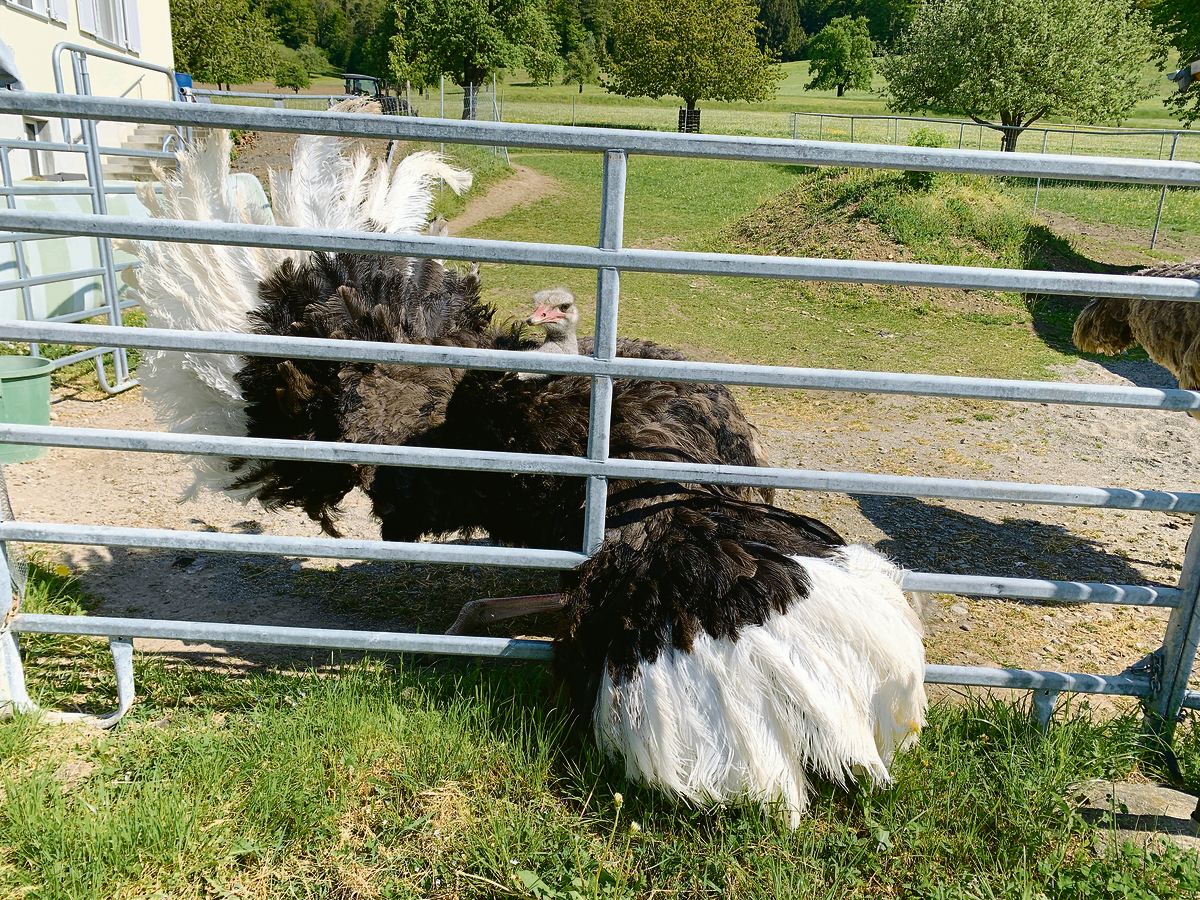 Im thurgauischen Weiler Ifwil bei Bichelsee-Balterswil leben seit gut zwei Jahren Strausse. Mitte April schlüpften die ersten zwei Straussenküken. Ende Monat folgten zwei weitere. Die Familie Schwager freut sich riesig. Namen haben die beiden zuletzt geschlüpften Bibeli noch keine. Bei unserem Besuch sind sie drei Tage alt. Zusammengekauert sitzen sie auf dem weichen Frotteetuch unter der Wärmelampe. Ihre bräunlichen…