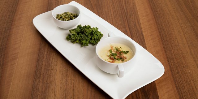 Zur Vorspeise servierte Sonja Vogt-Meyer eine Süssmaissuppe mit Kräuterstreuseln und Federkohlchips. Beim Menü hat mir sehr der regionale und saisonale Charakter gefallen. Hierzulande wird zum grössten Teil Körner- oder Silomais angebaut, der zu Tierfutter verarbeitet wird. Der Süssmais für die Suppe ist jedoch in der Umgebung der Gastgeberin gewachsen. Süss- oder Zuckermais fristet hierzulande eher ein Nischendasein. Aber vielleicht ändert sich das ja in den nächsten Jahren. Denn Mais besteht zu einem grossen Teil aus Wasser liefert aber auch Kohlenhydrate, Ballaststoffe, Proteine und Fette sowie viele Mineralstoffe und Vitamine. Mais zählt zu den Getreidesorten. Da er aber kein Gluten enthält, ist Mais, der roh ungeniessbar ist, auch für Menschen mit Zöliakie geeignet.