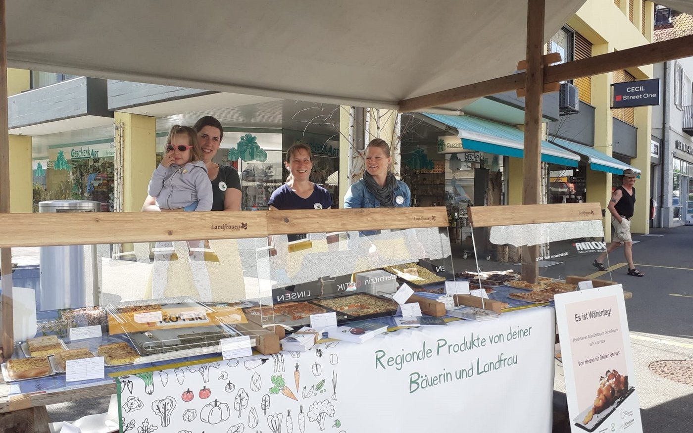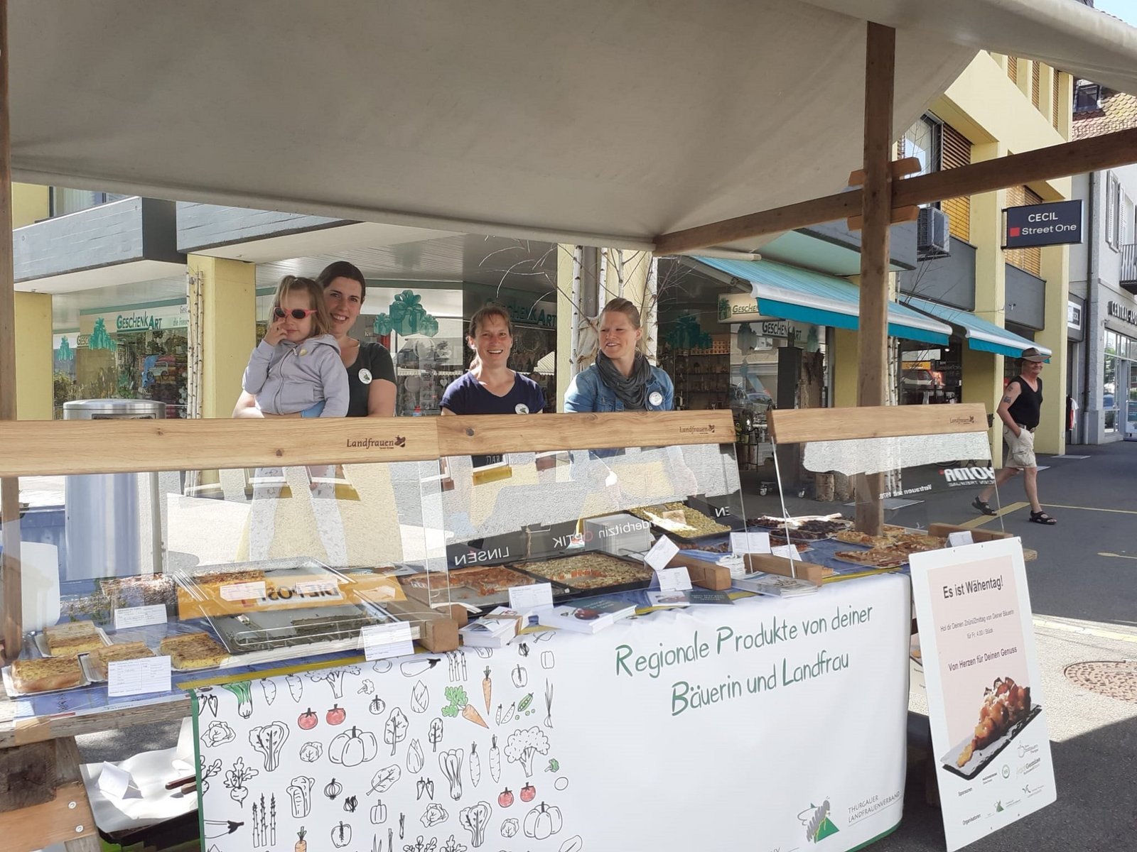 In Aadorf, Diessenhofen, Amriswil und Frauenfeld boten die Landfrauen Mitte Mai leckere Wähen an - von fruchtig bis würzig, süss bis salzig war alles dabei. Die Idee dahinter: Mit den Konsumenten ins Gespräch kommen. So diskutierten und fachsimpelten die Landfrauen mit den Kunden und kamen sogar ins Politisieren.