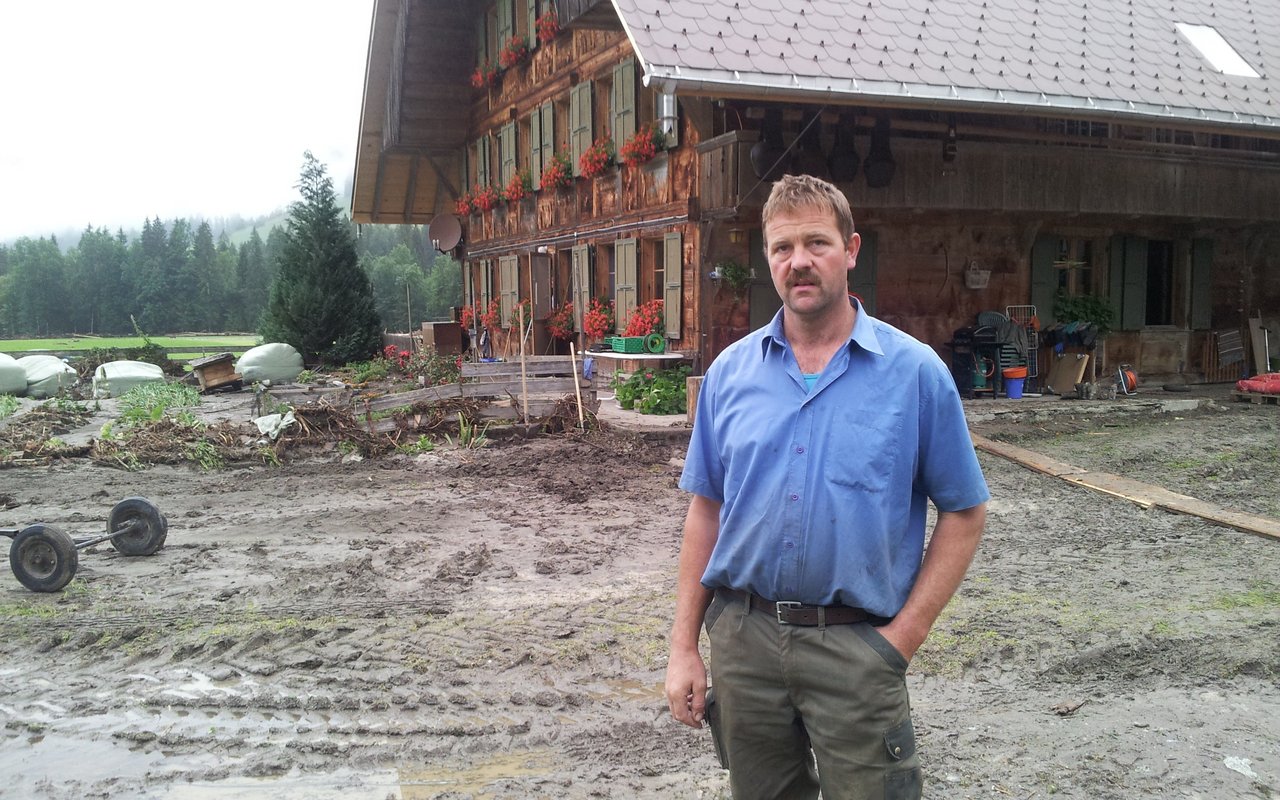 Dem Landwirt reichte es nicht mehr, sich im Haus in Sicherheit zu bringen, als das Wasser kam. Er habe lediglich den Kindern zurufen können, sich in den obersten Stock zu begeben, als er zusehen musste, wie Wasser und das mitgeführte Geröll sein Haus bedrohten.