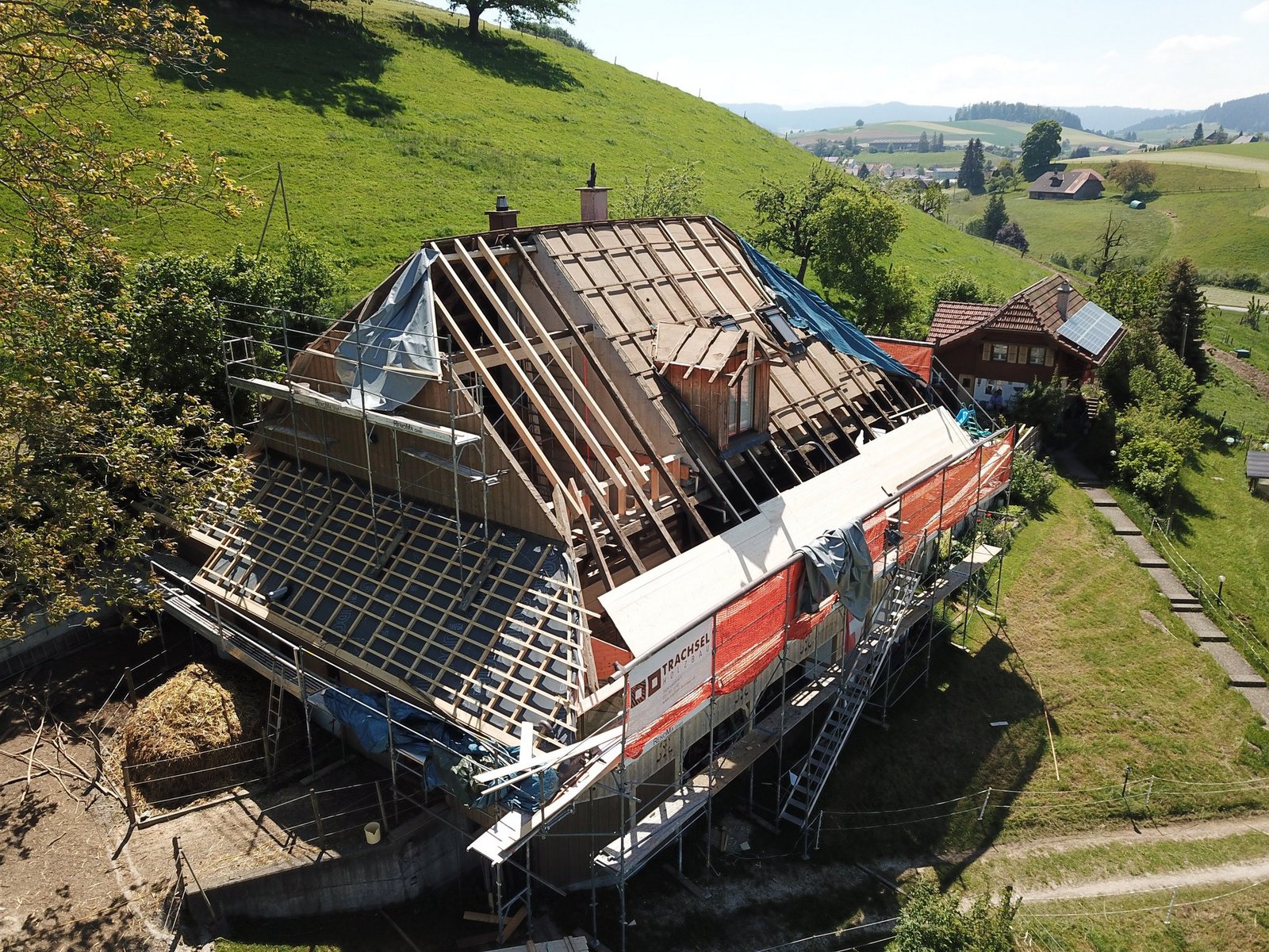 «Das geit de sicher nid», bekam Marcel Stähli während des Bauprojekts immer wieder zu hören, doch er liess sich davon nicht beeindrucken. Denn der 43jährige Lokführer und seine Frau wollten ihr denkmalgeschütztes Bauernhaus in Walkringen unbedingt zum Sonnenkraftwerk machen. Mittels Photovoltaik (Solarzellen) sollte Strom und mittels Solarthermie (Sonnenkollektoren) Warmwasser erzeugt werden. Und zwar all dies auf dem Dach. Doch der 1780 erbaute Holzständerbau ist ein sogenanntes K-Objekt. Für diese kantonalen Schutzobjekte sind die Auflagen bei Erweiterungen oder Umbauten besonders streng. [IMG 2]