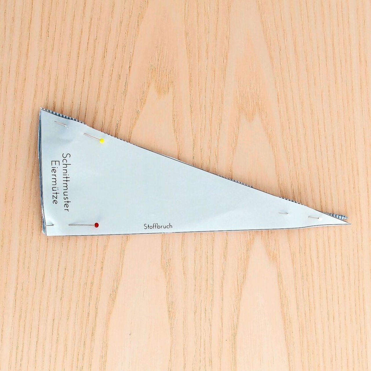 - Das Schnittmuster auf den Stoff legen (Hinweis «Stoffbruch» beachten) und das Mützchen zuschneiden.