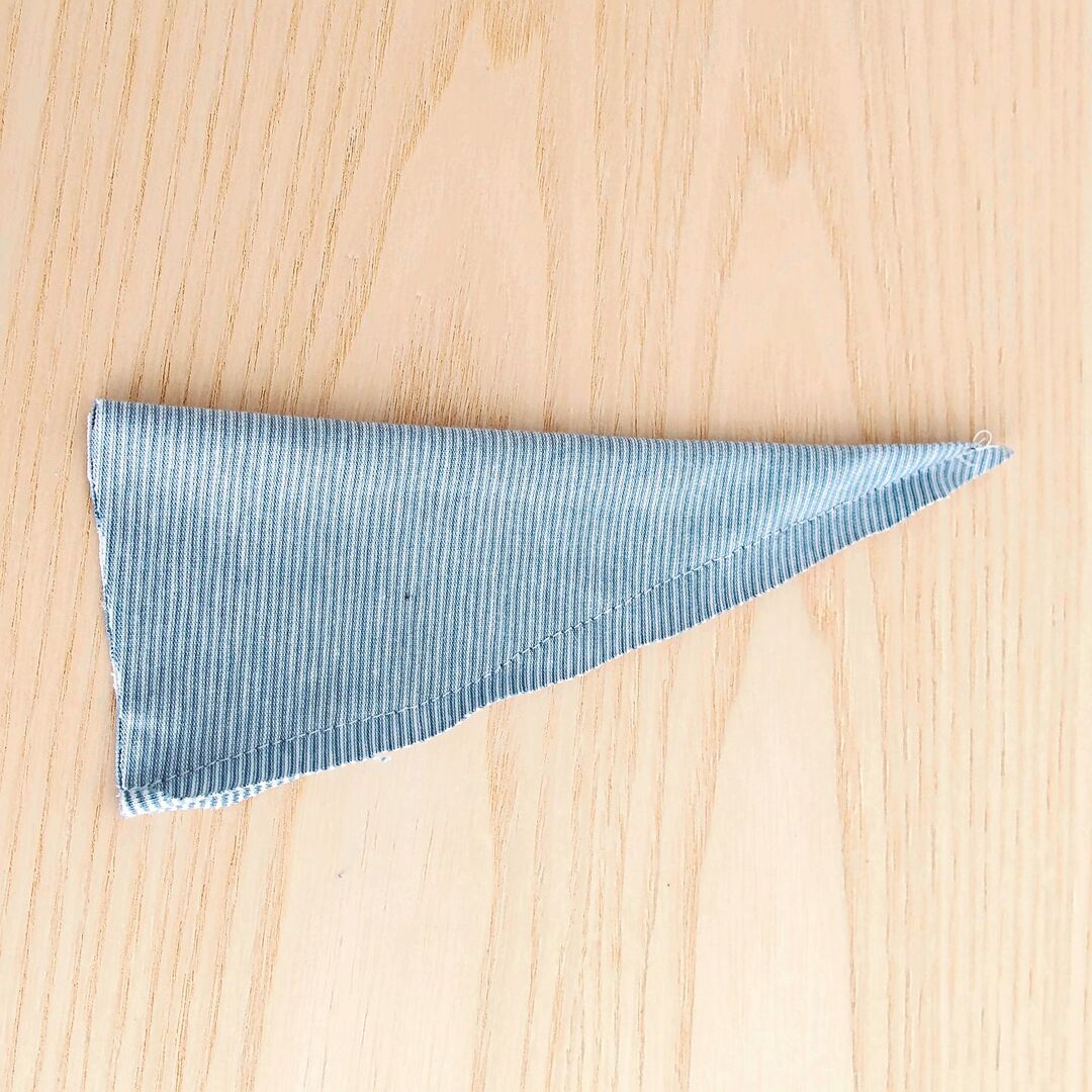 - Oben am Zipfel einen Knoten machen und den Rand umkrempeln.