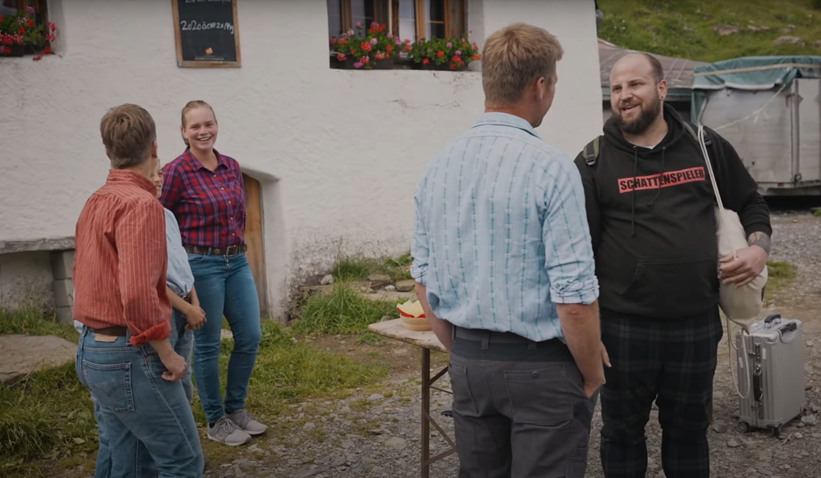 Eine Woche lang hat der Zürcher Barmann bei Toni und Marianne Hänni und ihren drei Kindern an der Lenk im Simmental mitgearbeitet. Auf 1068 m ü. M. war er gefordert – und manchmal etwas überfordert. So konnte er beim Melken brillieren und hatte sichtlich Freude am Kontakt zu den Tieren, beim Mähen im steilen Gelände er aber Mühe: Die Hitze setze Sandro Lötscher zu und er hatte Angst, samt Mäher abzustürzen.