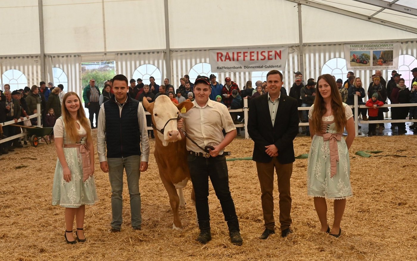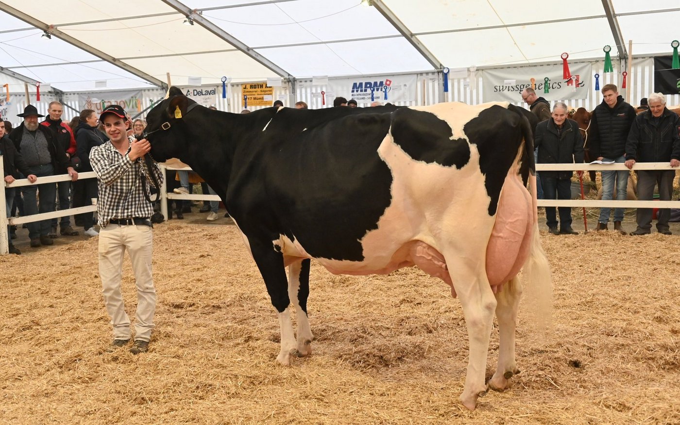 Ein Holsteinkuh setzt sich gegen alle anderen Rassen durch: Jacobs Doorman Estromate wird an der Solothurner Eliteschau 2023 in Mümliswil, Miss Schöneuter über alle Rassen. Die Siegerin stammt aus dem Stall von Jonas Gyger und Stephanie Burkhalter aus Hägendorf. Die Verkündung des Sieges weckt beim Züchter sichtlich Emotionen.