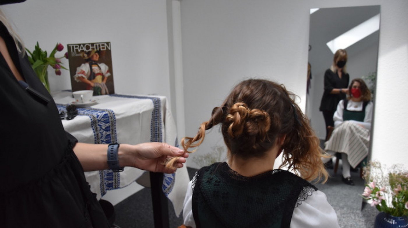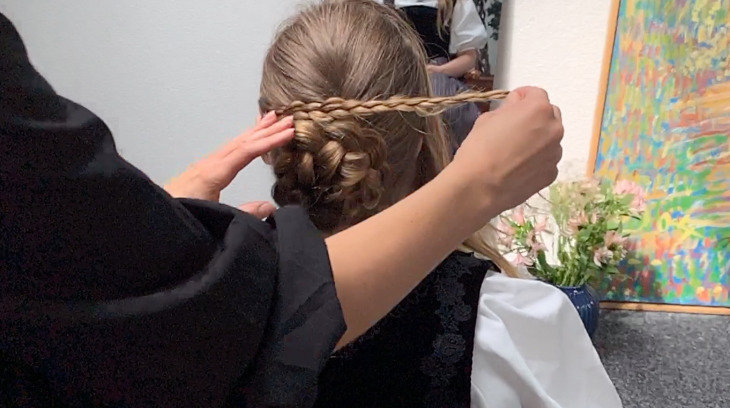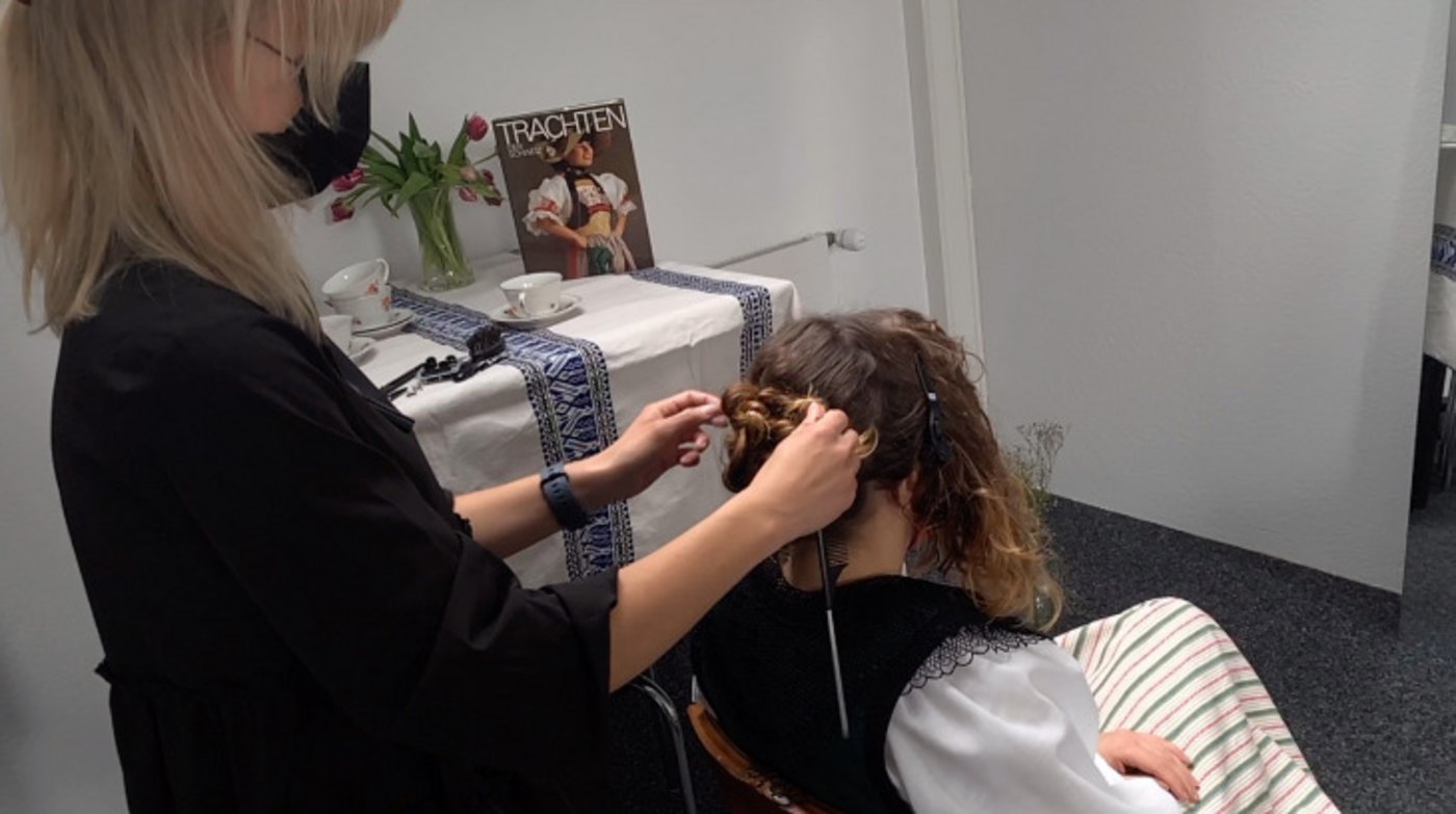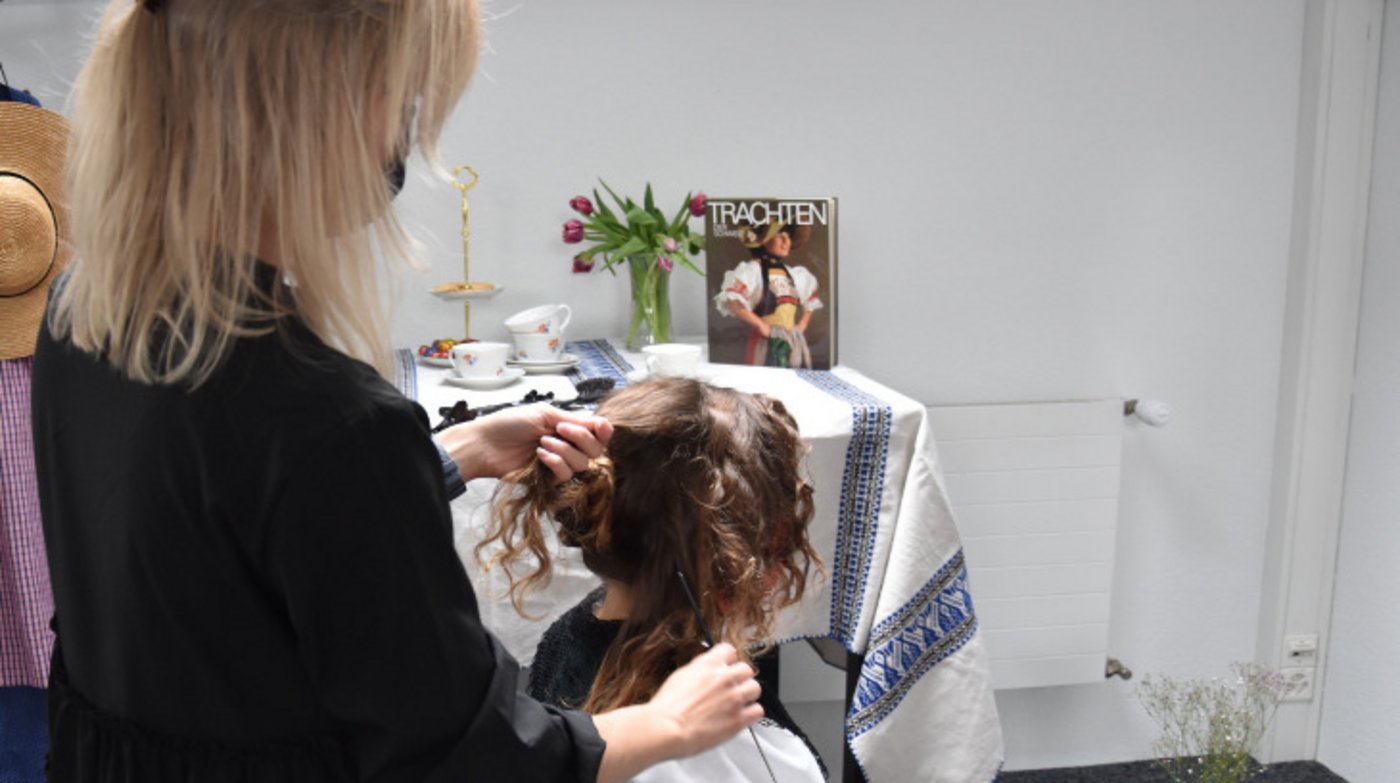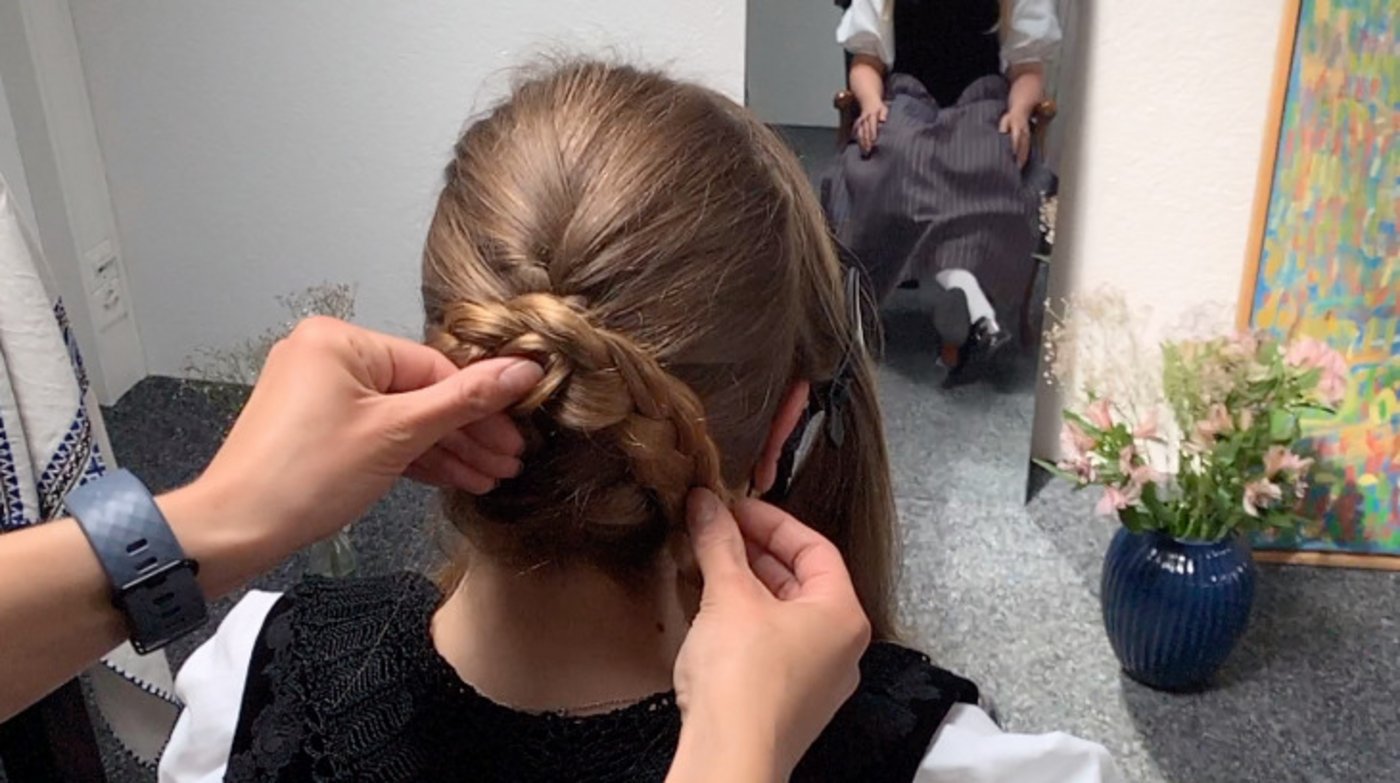 Das braucht es: Haarbürste Nadelstielkamm Klammern Spängelchen kleine Haargummis (die bekommt man bei Migros oder Coop) Haarlack oder Wachsspray Ev. Volumenpuder Ev. Blumen oder Perlen als Verzierung Der Besuch von Cheyenne Michel Mehr über den Besuch der talentierten Coiffeuse und der Bedeutung von Trachtenfrisuren lesen Sie im Hauptartikel zum Tag der Tracht oder hören Sie in unserem Podcastbeitr…