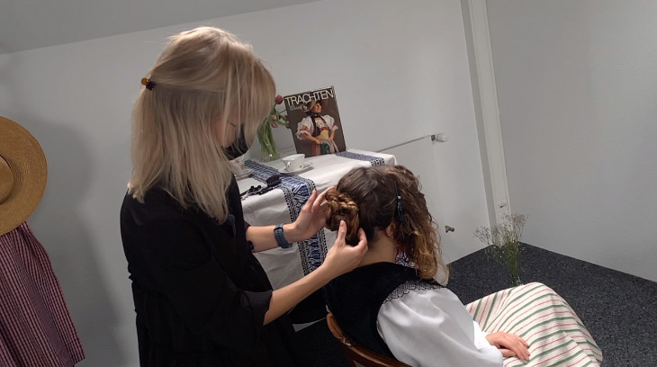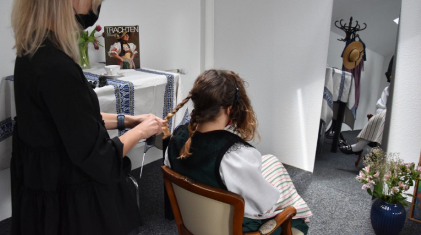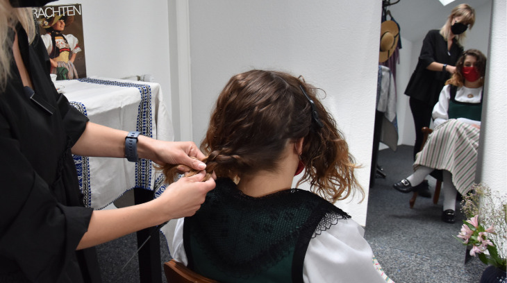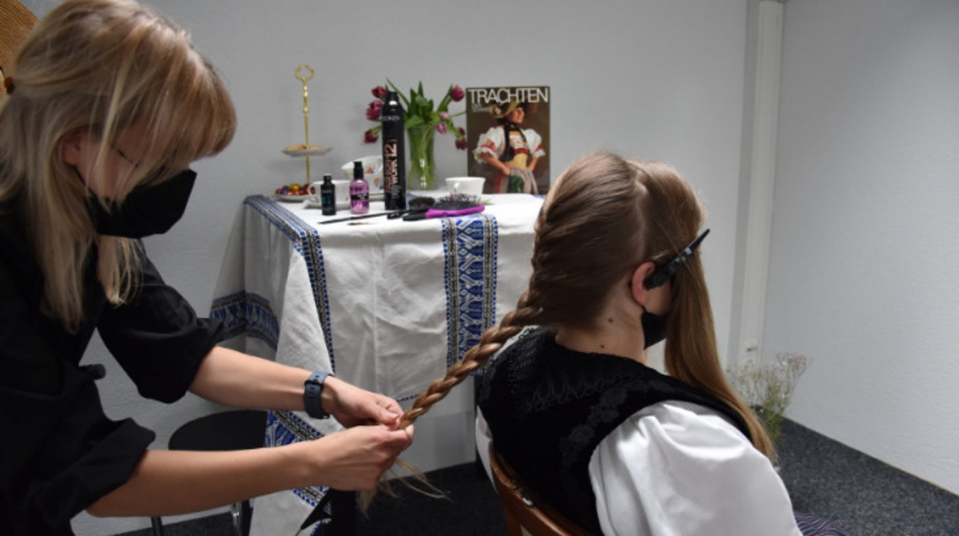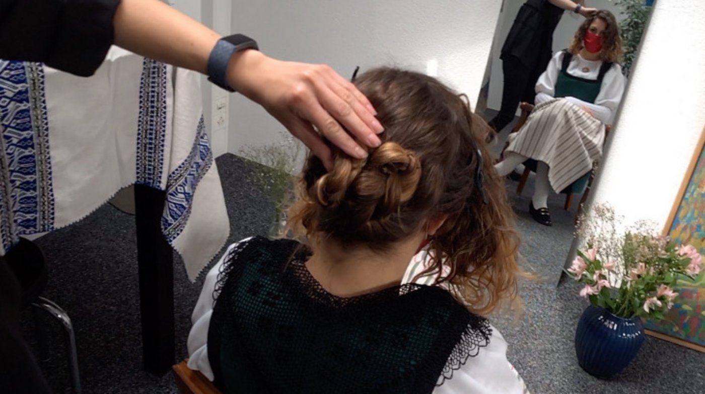 Das braucht es: Haarbürste Nadelstielkamm Klammern Spängelchen kleine Haargummis (die bekommt man bei Migros oder Coop) Haarlack oder Wachsspray Ev. Volumenpuder Ev. Blumen oder Perlen als Verzierung Der Besuch von Cheyenne Michel Mehr über den Besuch der talentierten Coiffeuse und der Bedeutung von Trachtenfrisuren lesen Sie im Hauptartikel zum Tag der Tracht oder hören Sie in unserem Podcastbeitr…