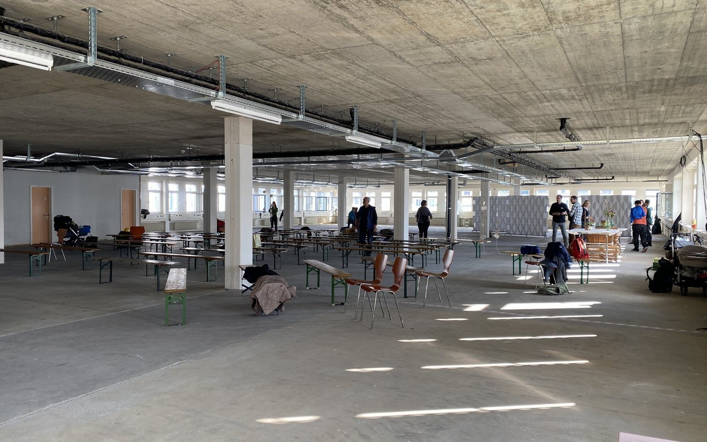 Heute ist das Webergut keine Augenweide: Ein altes Bundesverwaltungsgebäude in einem Industriegebiet, davor ein grosser Parkplatz. An einem improvisierten Rednerpult aus aufgestapelten Vorkeimkisten stehend verglich Matthias Tobler seine Kindheit auf einem Bauernhof mit den Visionen für diesen Ort: «Es war immer das Grösste, wenn Vater ein Bauprojekt plante. Dann sassen alle am Tisch und haben mitdiskutiert. Noch heute kann ich über den Betrieb gehen und sagen: Das war meine Idee, da war ich beteiligt», erinnert er sich. So soll es dereinst auch den Bewohnenden des Weberguts gehen.