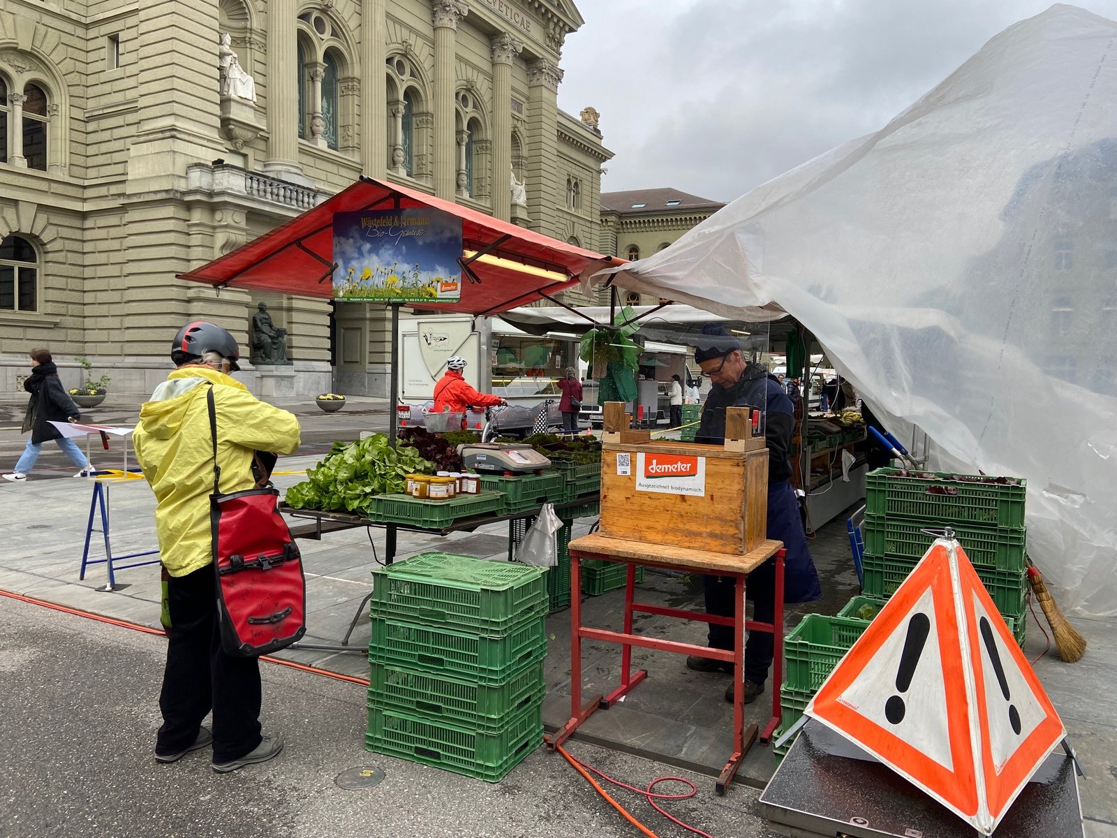 Am ersten Stand treffen wir Walter Stettler aus Bolligen an. Er ist Präsident des Vereins Berner Märit. Zusammen mit seinen Vorstandskollegen hat er ein Konzept ausgearbeitet, das der Gemeinderat, die Stadtberner Regierung genehmigt hat.