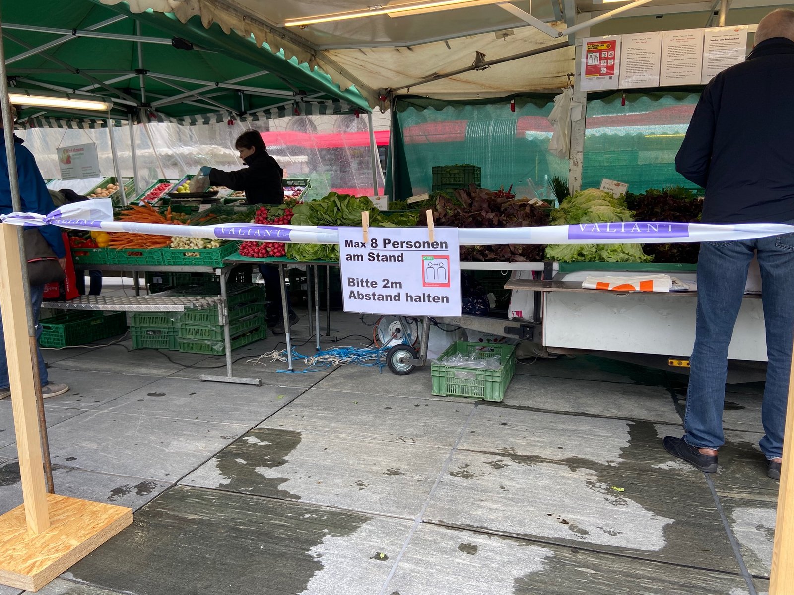 Auf dem Markt ist die Stimmung noch verhalten, es sind nur wenig Leute am Einkaufen. Das dürfte auch an den kühlen Temperaturen liegen. «Während des ganzen Lockdowns war prächtiges Wetter und jetzt wo es wieder losgeht ist es derart garstig», beklagt sich eine Marktfahrerin. Aber jetzt kanns ja nur noch aufwärts gehen.
