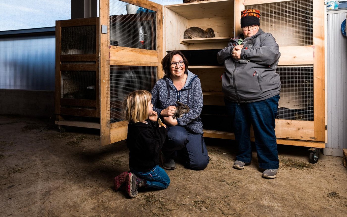 Aufgewachsen ist Cathrin Iten in einer Blockwohnung in Steinhausen. Sie ist gelernte Geomatikerin (Vermessungszeichnerin) und ging früher viel auf Reisen, auch für längere Zeit. Als sie ihren jetzigen Mann kennenlernte und auf den Hof kam, haben sie das Betreuungsangebot zunächst in Form eines Mittagstischs gestartet. Bis zum dritten Kind hat sie jeweils einen Tag in der Woche weiter gearbeitet. 2014, als die mittlere Tochter drei Monate alt war, gab sie die Arbeit für den Fachausweis Bäuerin ab.