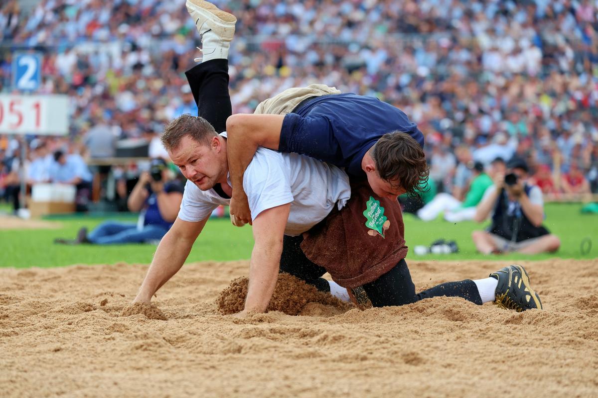 Er ist das ganz grosse Nachwuchstalent der Emmentaler - der angehende Landwirt Michael Moser aus Biglen. Dass mit ihm auch am «Eidgenössichen» zu rechnen ist, war bereits im Vorfeld klar. Es fehle ihm noch etwas an der Masse, heisst es in der Szene. Ist der 17-jährige, aktuell 1.93 m grosse Jungspund erst einmal ausgewachsen und bleibt gesund, dürfte er eine grosse Karriere im Sägemehl vor sich haben.