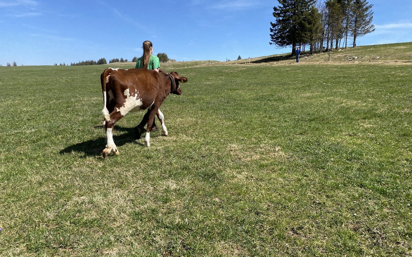 Fabienne Kaufmann ist in mehrfacher Hinsicht eine Allrounderin: «Ich arbeite im Stall, auf dem Feld, koche und serviere», erzählt sie. Dass ihr Tag damit manchmal mehr als 24 Stunden hat, stört sie nicht – «es bereitet mir Freude, da ich mein Hobby mit der Arbeit verbinden kann». Beim Obergrenchenberg spricht sie von «ihrem» Hof, auch wenn es der gepachtete Zweitbetrieb ihrer Familie ist. «Ich verbringe so viel Zeit hier oben und lebe buchstäblich mit den Tieren zusammen», so ihre Begründung. Entsprechend eng ist ihre Verbindung zu den rund 30 Aufzuchtkälbern, den etwa 20 Schafen und insgesamt 180 Sömmerungstieren (90 Rinder und 90 Schafe), die sie hier zusammen mit ihrer Familie und Angestellten betreut, aber auch zur weitläufigen 80-ha-Alp selbst. «Es schmerzt richtig, wenn Wildschweine hier irgendwo die Erde aufreissen.» Heute befindet sich Fabienne Kaufmann als Zweitausbildnerin im zweiten Lehrjahr zur Landwirtin, der Obergrenchenberg ist ihr Lehrbetrieb und Vater Tony Kaufmann ihr Lehrmeister.