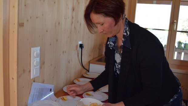 Wieder zurück zur Bauernküche in Hergiswil – das mittlerweile flüssige Kokosfett in der Gusseisenpfanne erreicht schon bald die gewünschten 180 Grad. Letzten Herbst probierte die begeisterte Köchin erstmals Holl-Rapsöl aus und war überzeugt: «Künftig werde ich auf jeden Fall diese einheimische Zutat verwenden.» Die Bäuerin legt eine Teigrondelle in die Pfanne und greift sich sofort die zwei bereitgelegten Gabeln. Mit der einen hält sie die Teigmitte fest, mit der anderen sorgt sie für eine Drehung und erzählt währenddessen: «Diese Drehung machen nicht alle, aber mir gefällt es besser so. Früher benützte man dafür übrigens Holzschindeln.» Wartet die Bäuerin mit diesem Handgriff nur wenige Sekunden zu lange, ist der Teig schon zu fest, um die perfekte Spirale zu erschaffen. Diese Handgriffe brauchen natürlich etwas Übung, als wirklich schwierig würde sie das «Chüechle» aber nicht beschreiben.