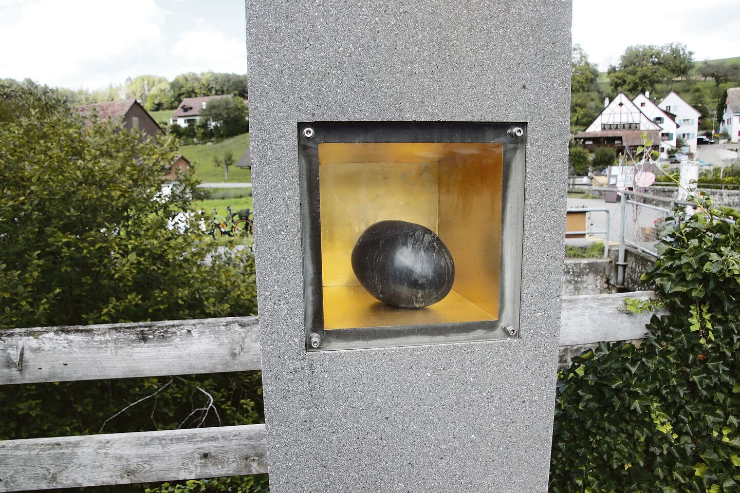 Für die Zwetschge wurde beim ersten Zwetschgenfest 2002 ein Denkmal geschaffen. Es trägt die Handschrift des Schaffhauser Bildhauers und Kunstschaffenden René Eisenegger. In einem vergoldeten Fach einer Vitrine in einer Steinsäule befindet sich eine übergrosse Zwetschge aus dem Halbedelstein Dumortierit.