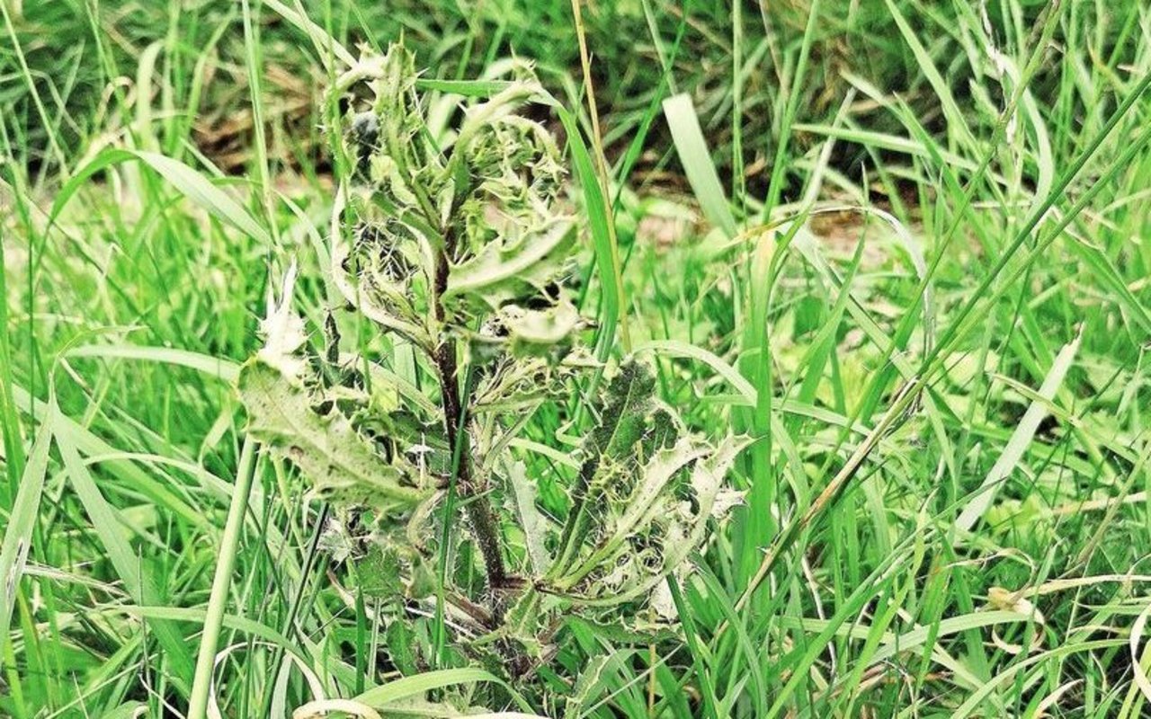 Disteln werden auf der Weide mit ihren stacheligen Blättern und robusten Stielen logischerweise nicht vom Vieh gefressen. Die gezielte chemische Behandlung einzelner Distelstöcke ist eine präzise Methode, um ihre Ausbreitung zu kontrollieren. Die unterirdischen Wurzeln können dort, wo sie verletzt werden, auch wieder frisch austreiben und machen somit die mechanische Bekämpfung eher schwierig.
