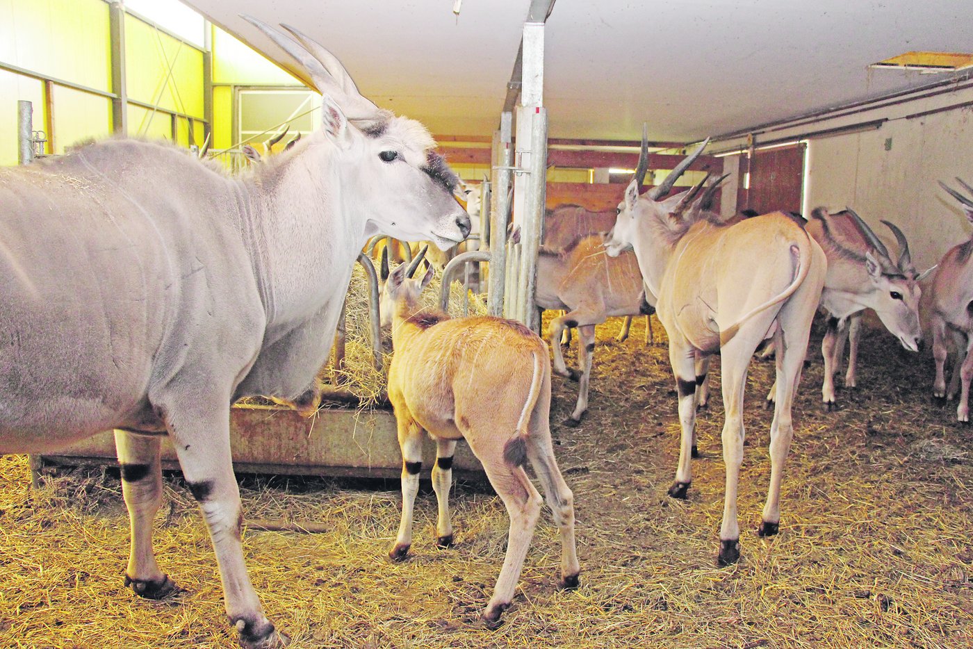 «Bueb», der Stier der afrikanischen Antilopen-Herde, kommt ohne Scheu an das Gitter der Abtrennung zum Besucher. Der Bueb ist eine Antilope der Unterart Elenantilope mit einer Schulterhöhe von einem Meter siebzig und trägt ein beeindruckendes, nach innen gedrehtes Geweih von einem Meter Länge, auf der Stirn trägt er einen dunklen Haarschopf. Inspiration aus Namibia Sein Fell ist gelbbraun, am Oberkörper befinden…