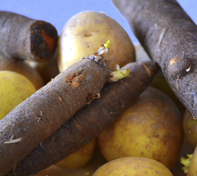 Der Topinambur gehört zur selben Familie wie die Sonnenblume und sieht in der Blüte ähnlich aus. Essbar sind die Wurzelknollen. In der Schweiz wird das Gemüse in kleinem Rahmen angebaut und ist damit ein wahrer Geheimtipp. Die Knollen können unter anderem gedünstet, gebacken oder frittiert werden. - Schwarzwurzel (Saison: Oktober bis Mai)
