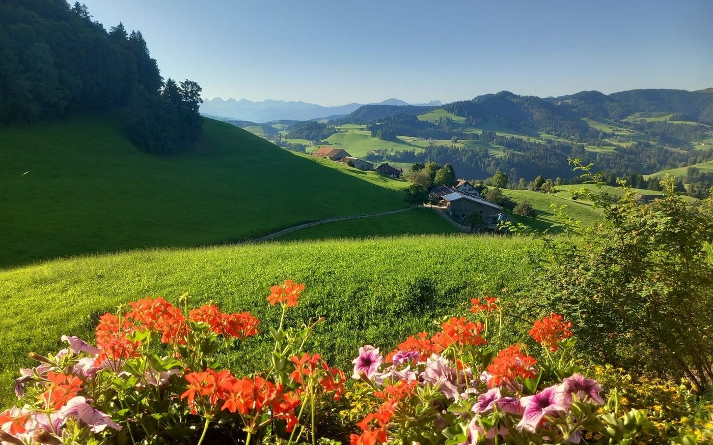 Vom stattlichen Bauernhaus im Weiler Brunnen in Dreien SG führt eine steile Naturstrasse ein paar Hundert Meter hinauf zu einem kleinen Hüttli. Es ist Brigittes Scherrers ganzer Stolz. Die 44-Jährige ist gelernte Bäcker-Konditorin und ausgebildete Bäuerin. Zweimal täglich steigt sie zum Hüttli hinauf, trägt Körbe voller Gebäck, Kaffee und Blumen mit sich – und richtet alles mit sichtbarer Freude her.