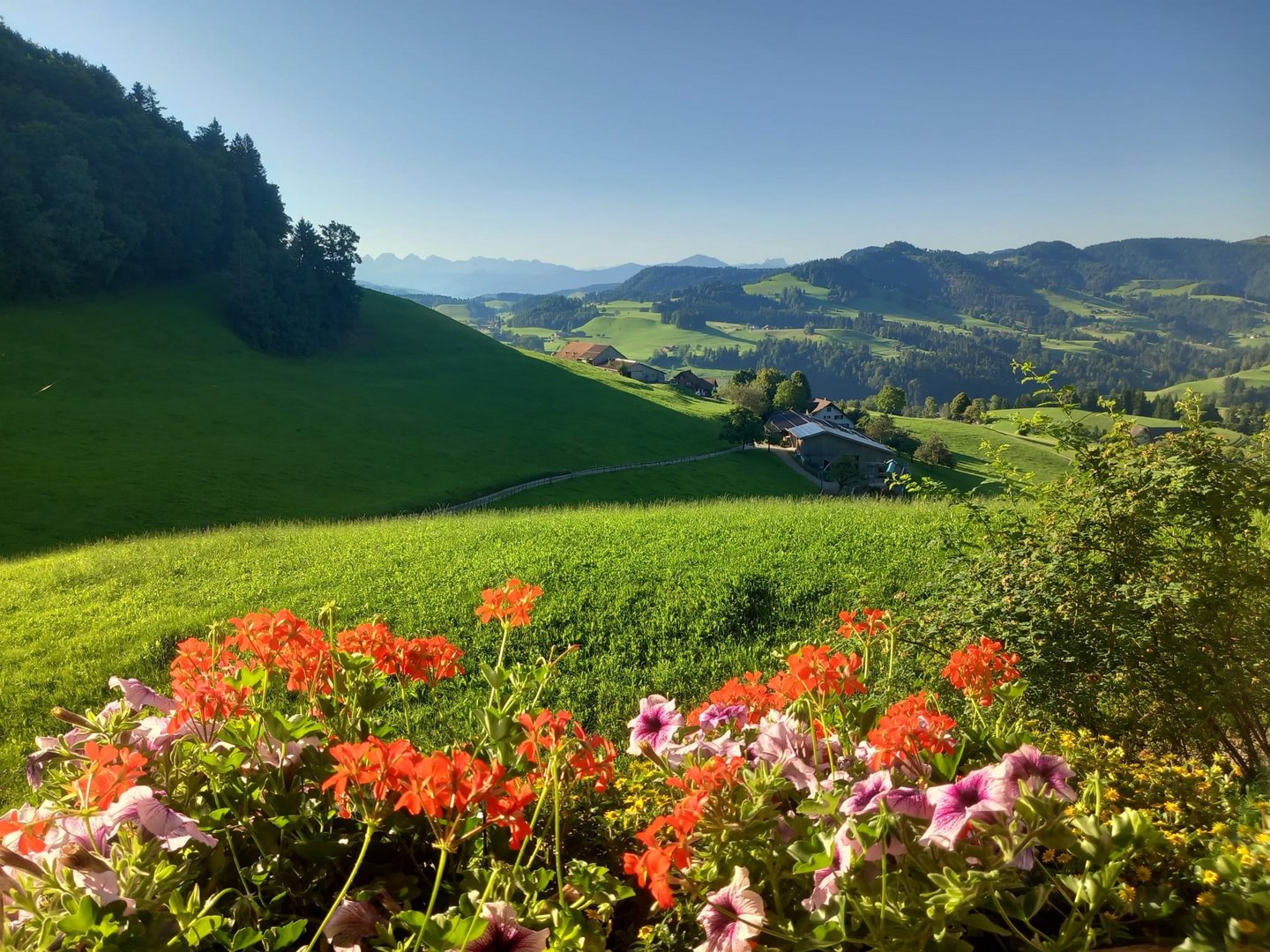 Als Brigitte und Beni Scherrer den Wald oberhalb von ihrem Betrieb kauften, war die kleine Waldhütte mit schönster Aussicht ins beschauliche Toggenburg, saftigen Wiesen und dunklen Wäldern, einfach mit dabei. Damals wussten sie noch nicht, dass es einmal zu einem beliebten Rastplatz für Wanderer und Velofahrer werden würde. Ihre Idee, einen gastlichen Ort am Waldrand zu schaffen, schlug ein wie eine Bombe. Es war während der Coronazeit – jener Phase, als plötzlich so viele Menschen draussen unterwegs waren.
