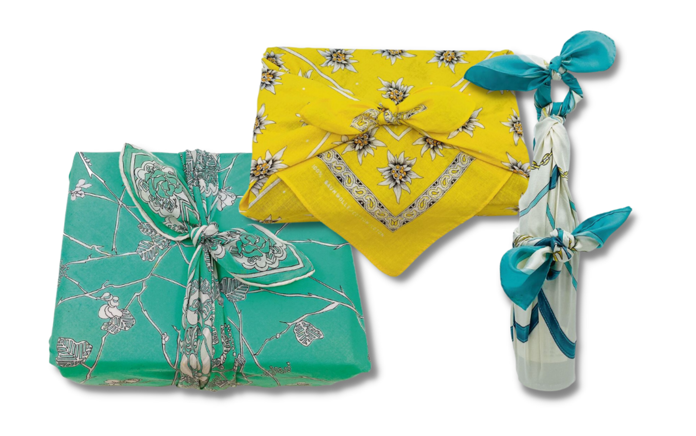 Es gibt sie in jedem Haushalt: Foulards und Nicki-Tücher, die sich nach einmaligem Tragen ungenutzt in Schubladen stapeln. Etwa das Souvenir von der letzten Ferienreise, das Überbleibsel vom Auftritt des Turnvereins oder der farblich passende Spontankauf zum inzwischen fleckigen Pullover, der nicht mehr sauber wird. Diese Weihnachten könnten die vergessen Tücher nochmals einen grossen Auftritt haben – als überraschende Geschenkverpackungen.