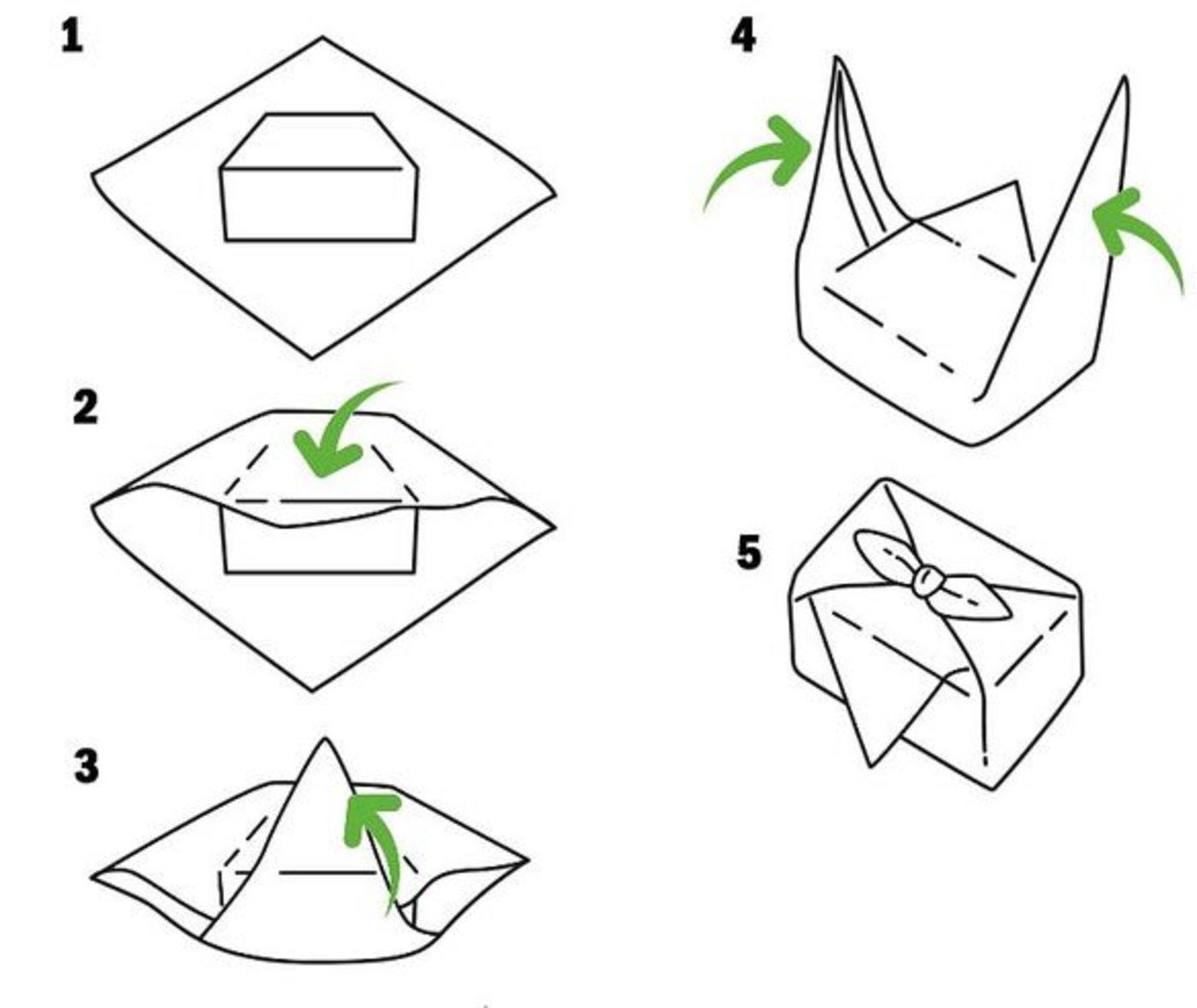 Das Vorbild dafür sind die traditionellen japanischen Furoshiki-Tücher. Schon vor etlichen hundert Jahren dienten sie in den öffentlichen japanischen Badehäusern zum Verpacken der Kleidung, während man im Wasser war. Daher bedeutet der Name frei übersetzt auch «Badetuch».