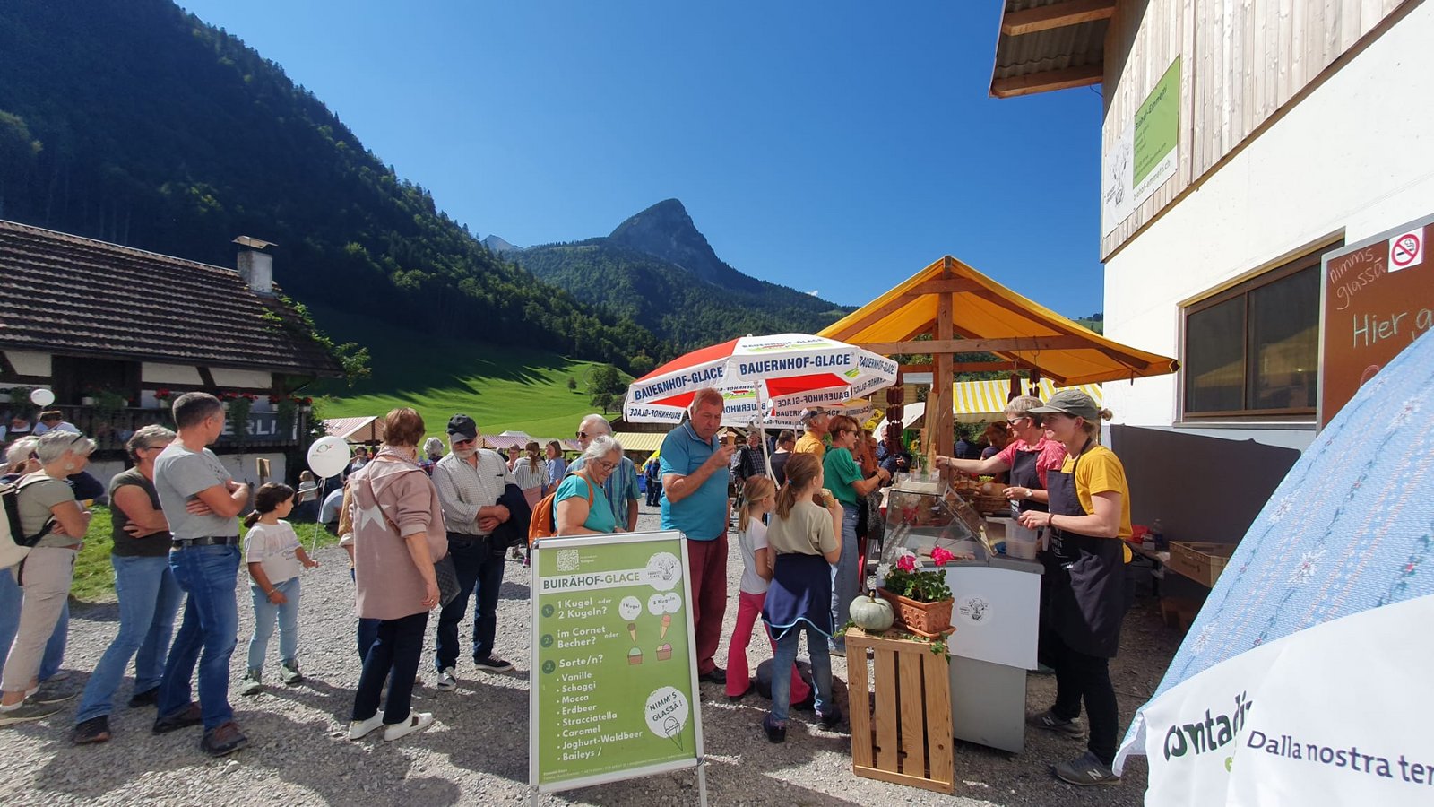 Heuer an der Reihe war der Biohof Emmetti der Familie Stefan und Kim Eberli. Die vielen Alpprodukte und das «Buirähof»-Glace, gepaart mit warmer Herbstsonne und schöner Aussicht, zogen viele Besucherinnen und Besucher an.