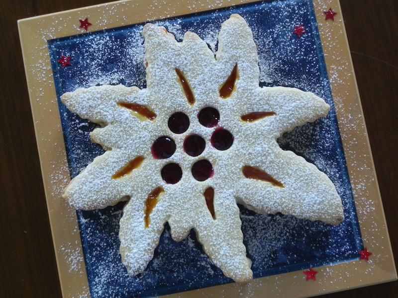 Für ein Guetzli benötigt Nicole Aschwanden die grössere der beschriebenen Teigmenge. Ausserdem fügt sie dem Teig ein Ei und etwas mehr Mehl bei, so hält das Ganze besser zusammen. Das Besondere bei ihren Guetzli ist, dass sie mit zweierlei Konfitüre gefüllt sind, das macht sie schön bunt.